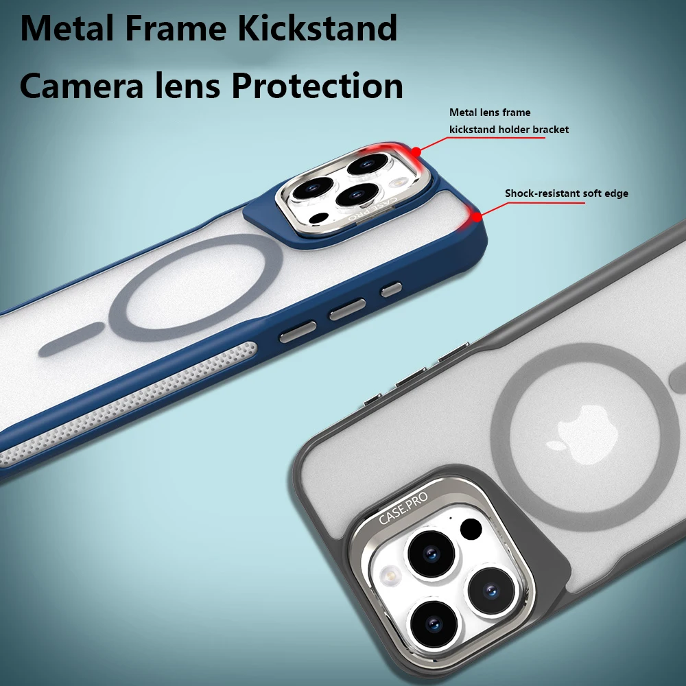 Magsafe Magnetic Camera Protection Kickstand Shockproof Case for iPhone