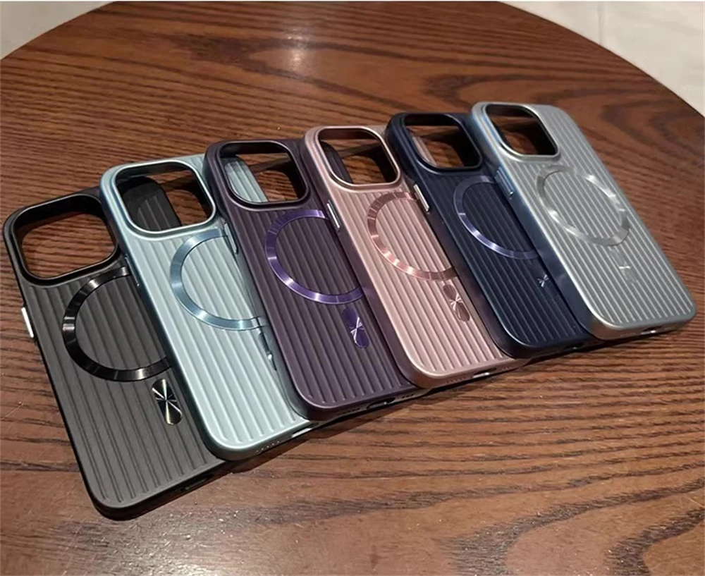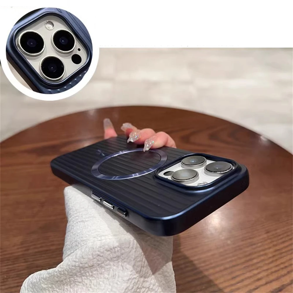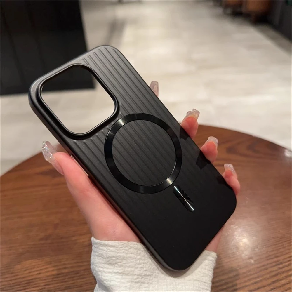 Magsafe Magnetic Luxury Corrugated Pattern Matte Case For iPhone
