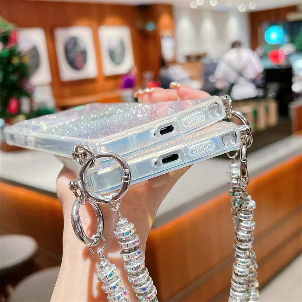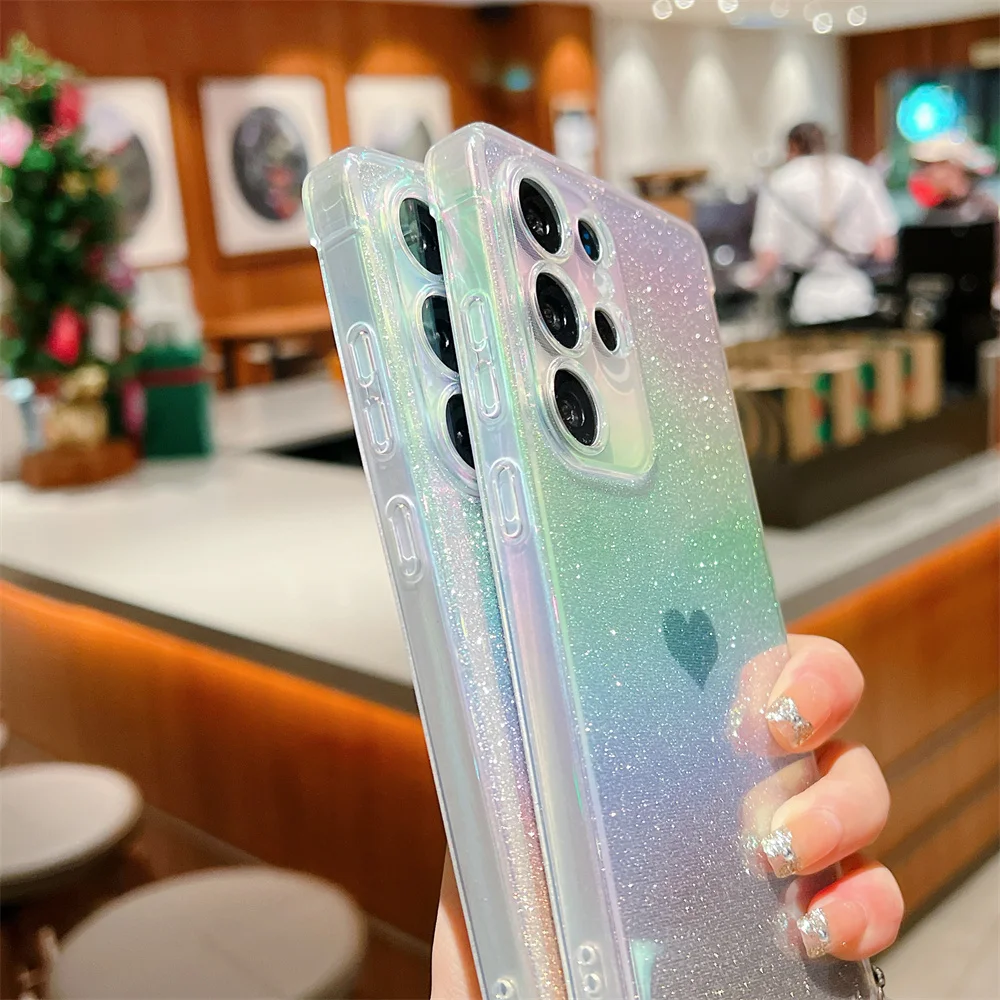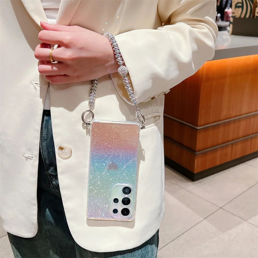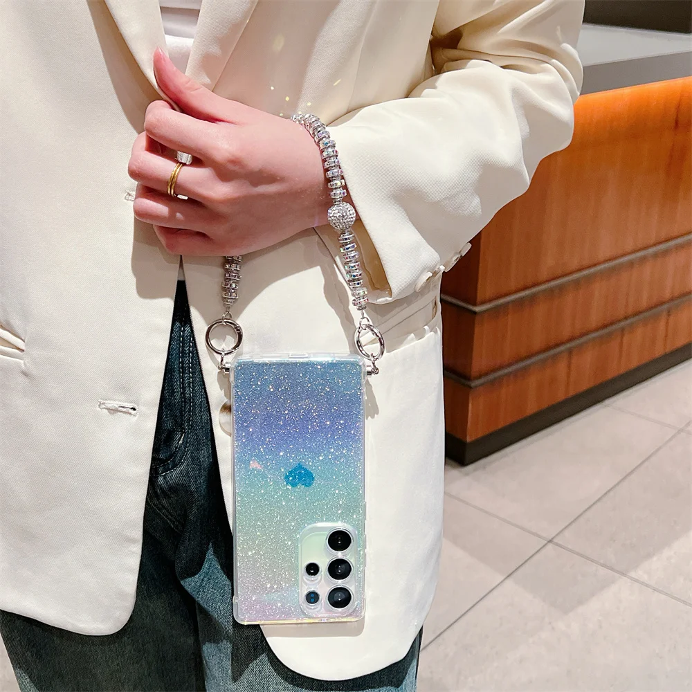 Gradient Glitter Love Heart Wrist Chain Case for Samsung