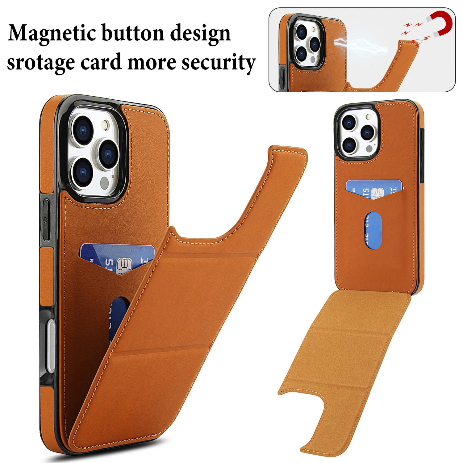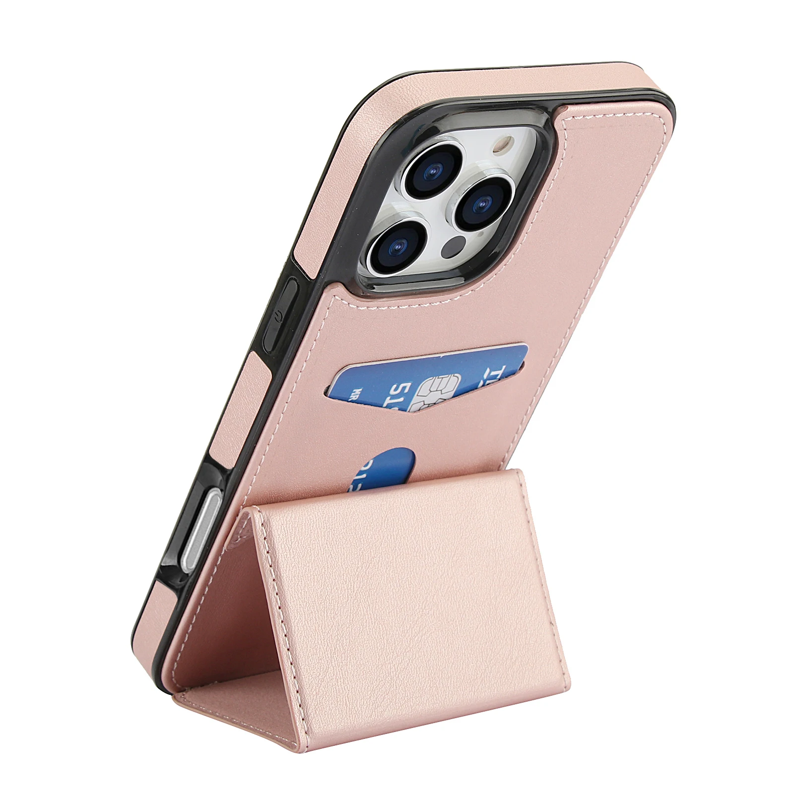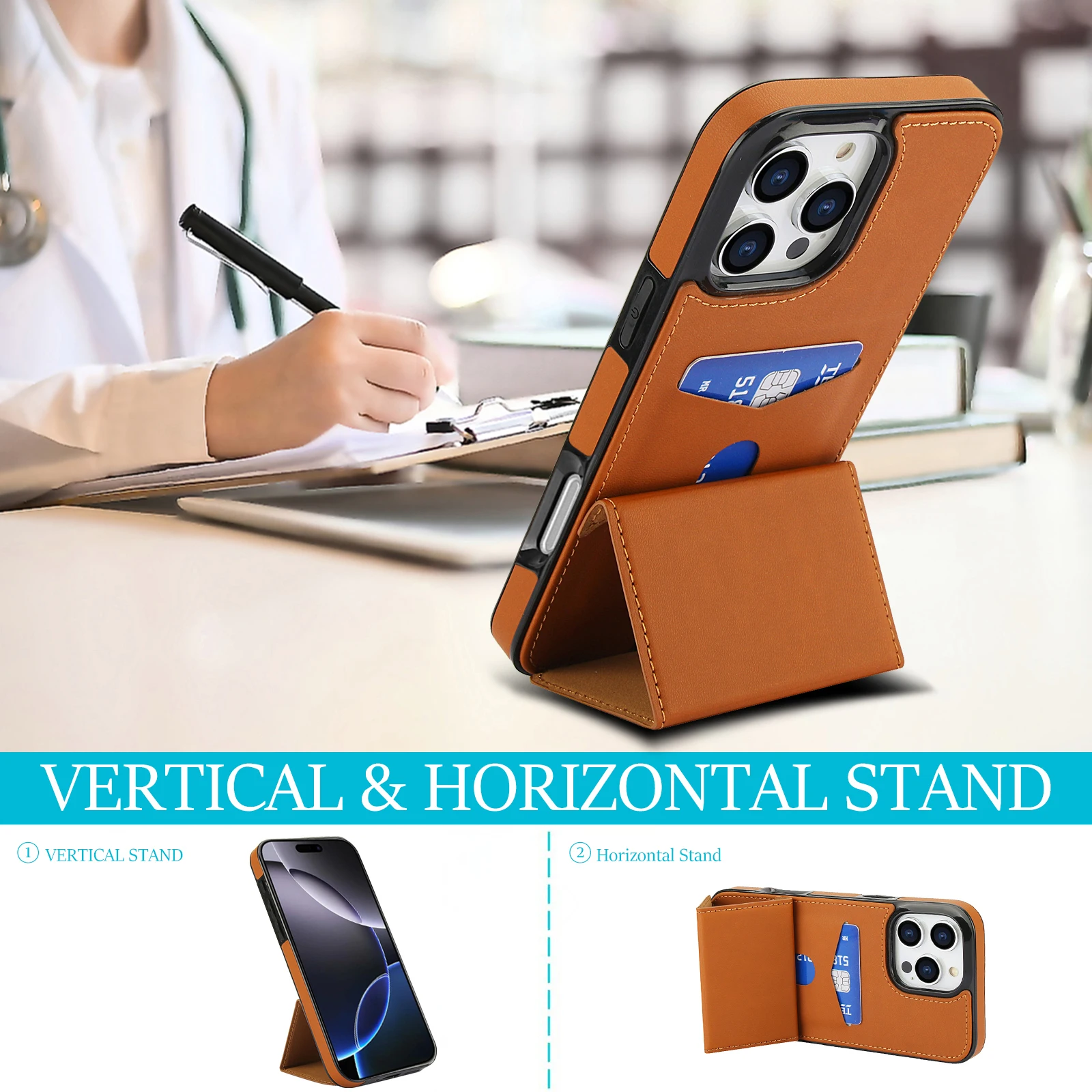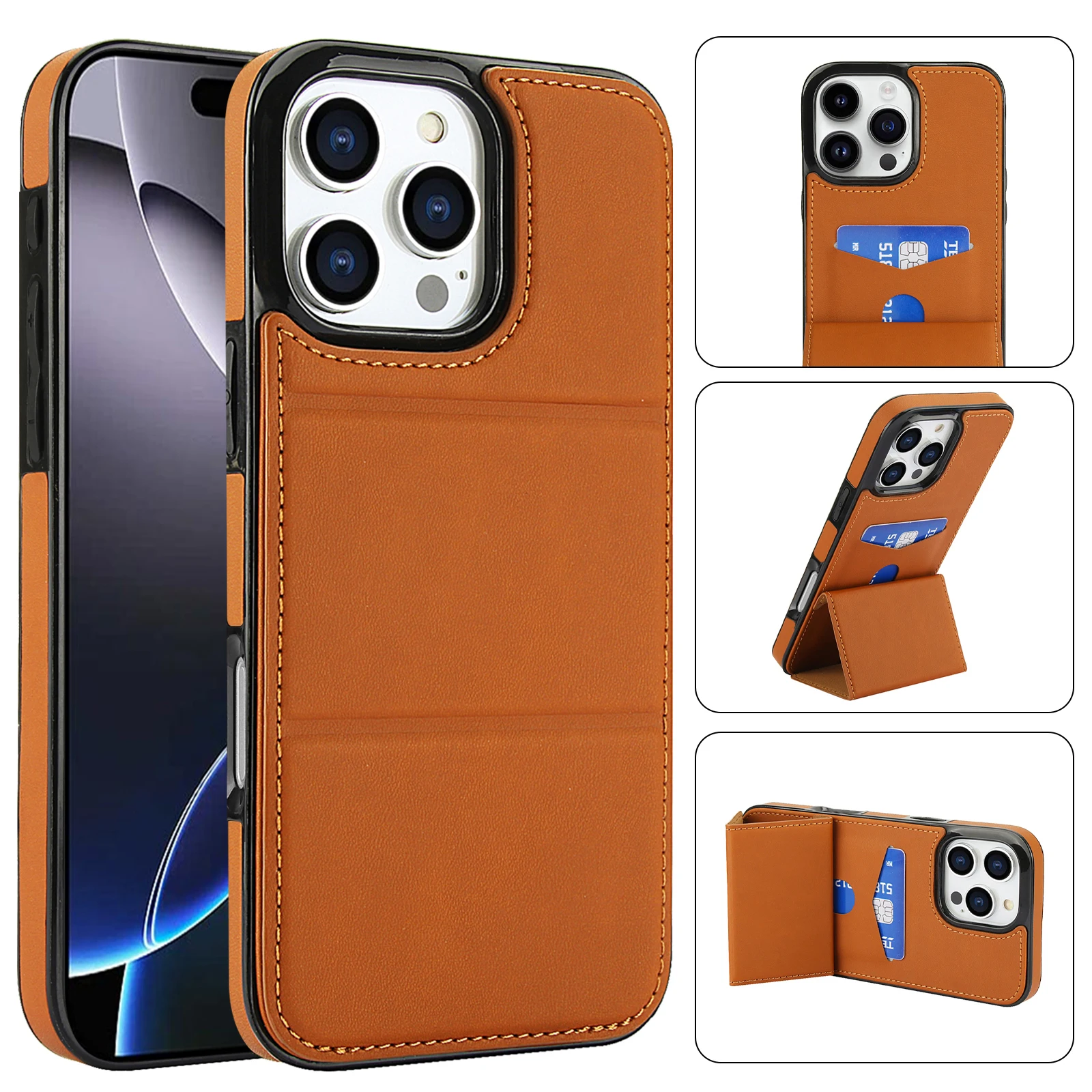Vertical Triple Fold Stand Cards Solt Wallet Leather Case For iPhone