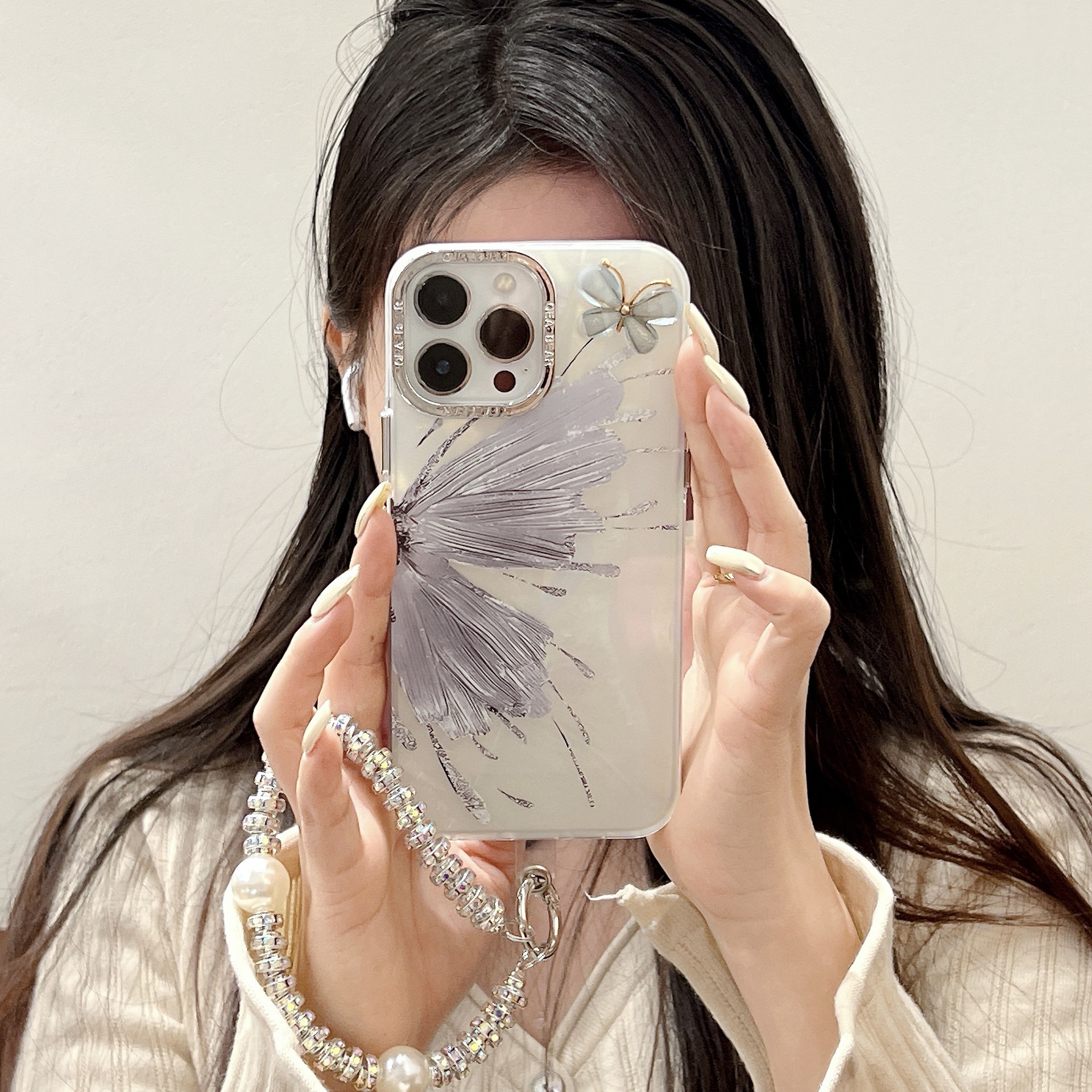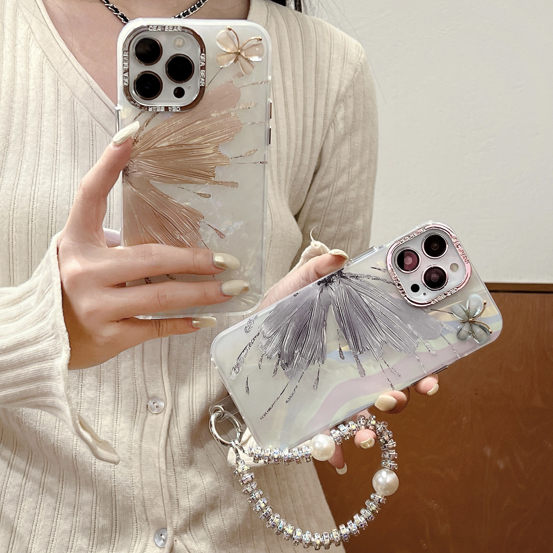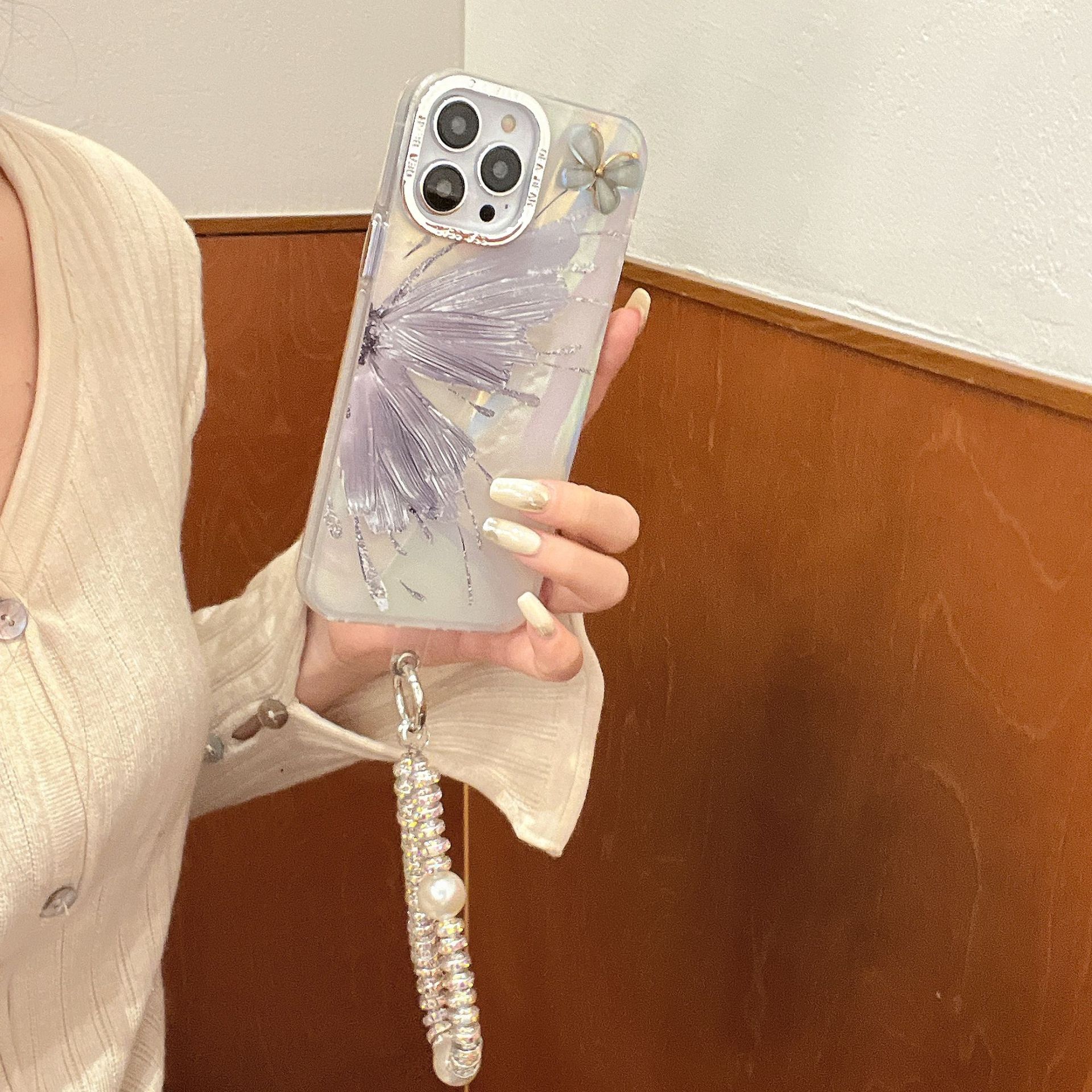 Plating Glitter Butterfly With Wrist Chain Case For iPhone