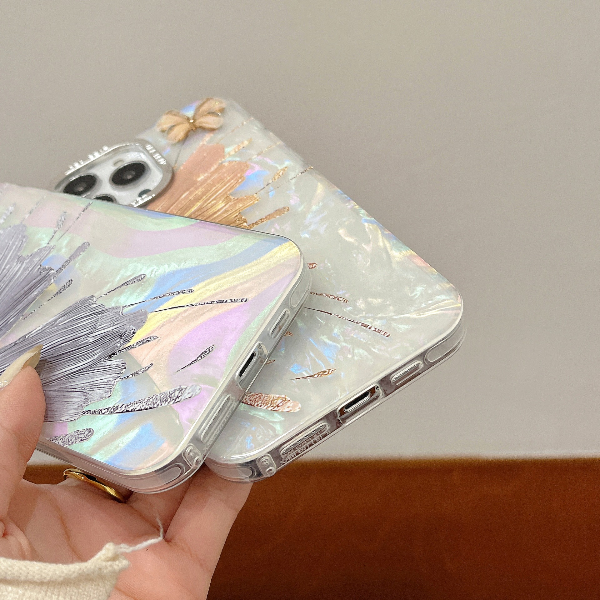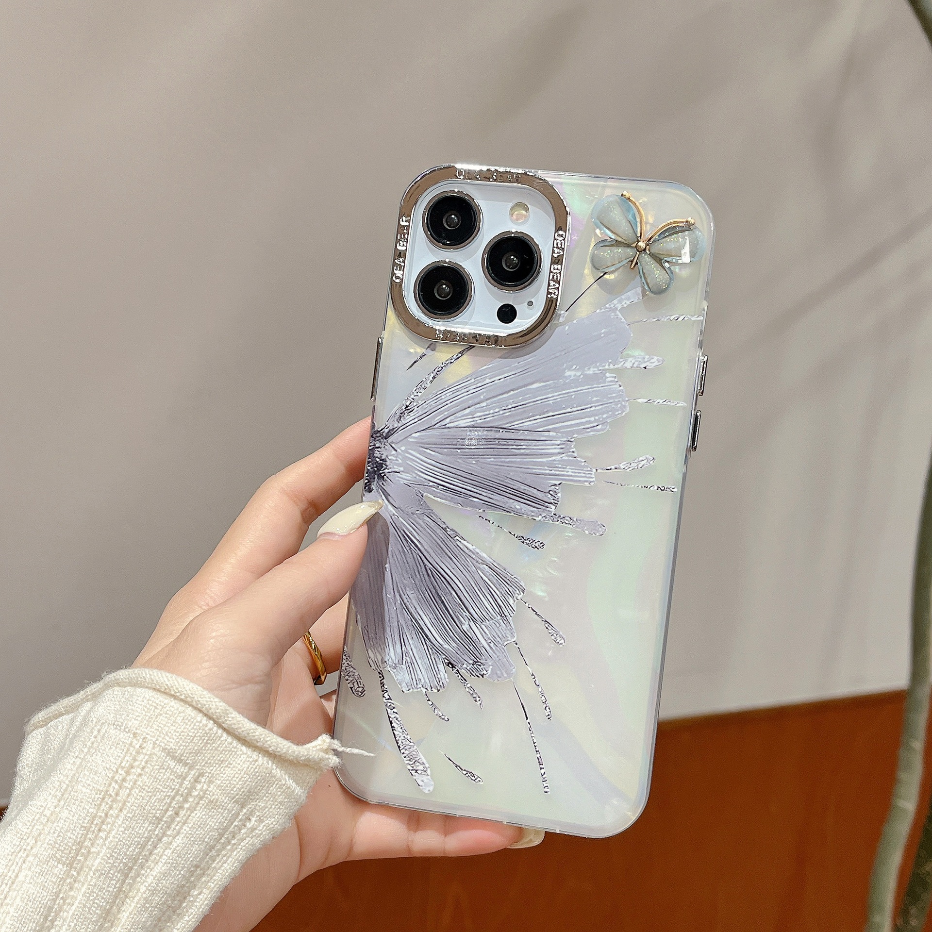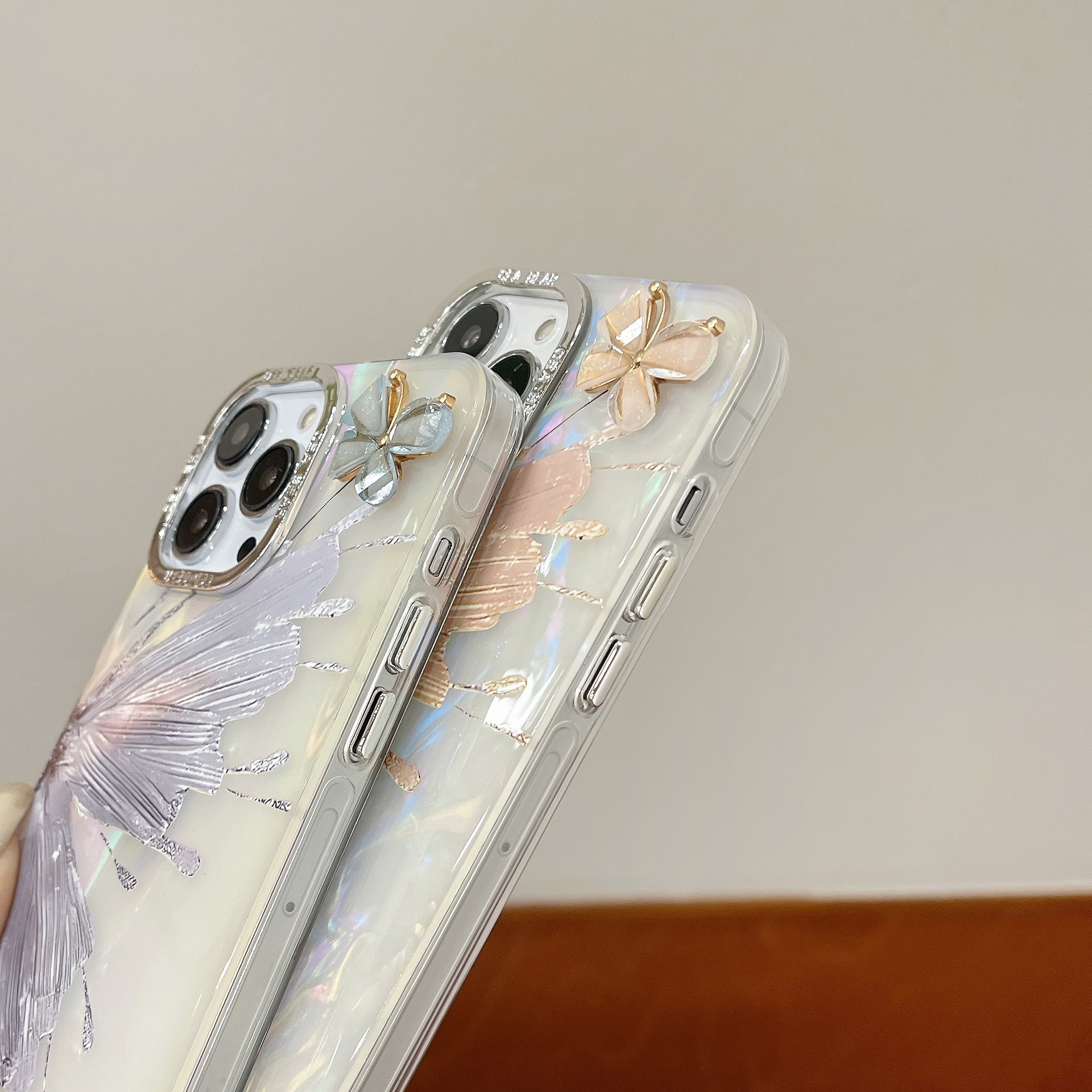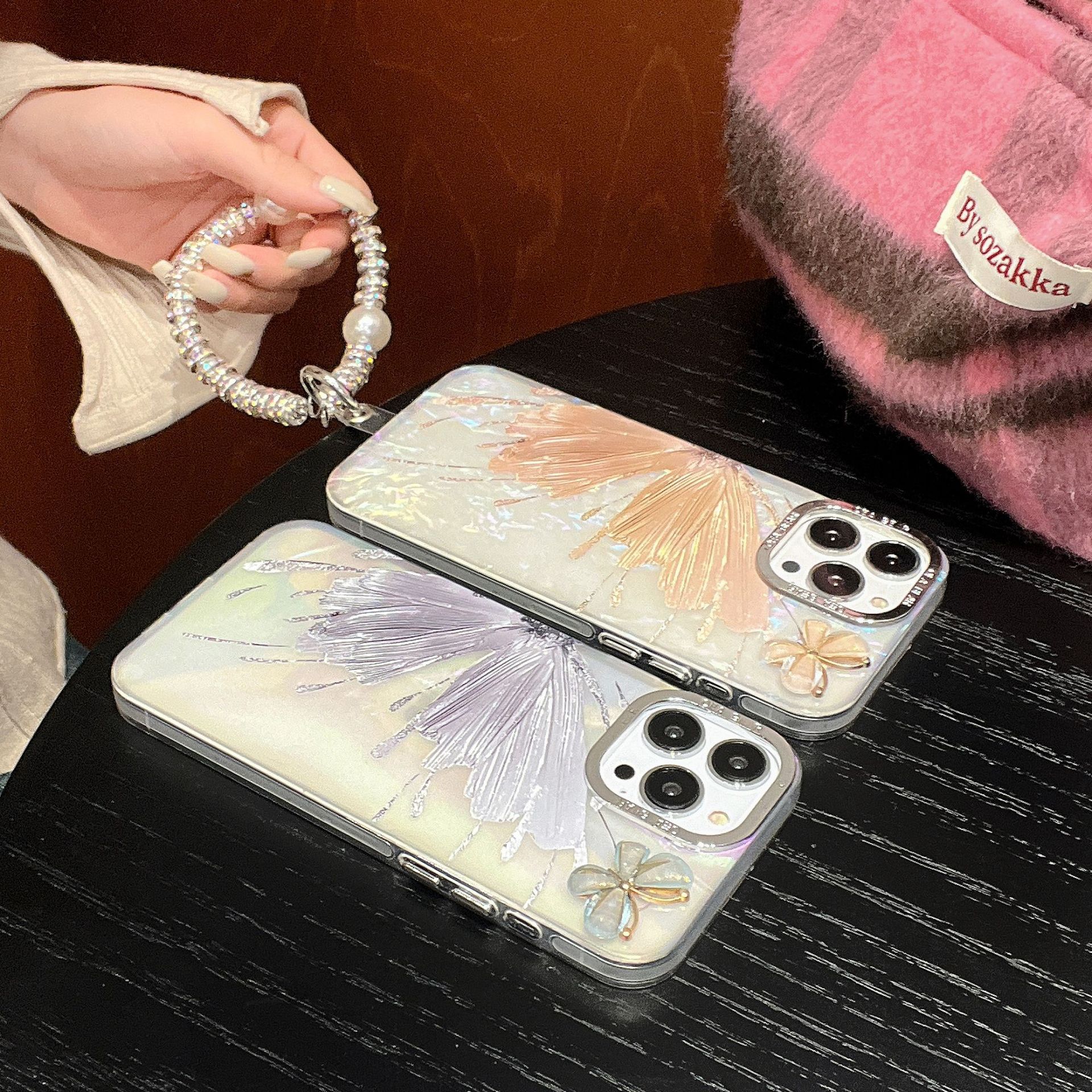 Plating Glitter Butterfly With Wrist Chain Case For iPhone