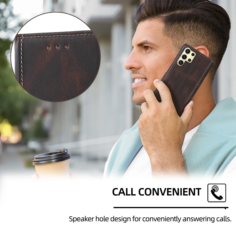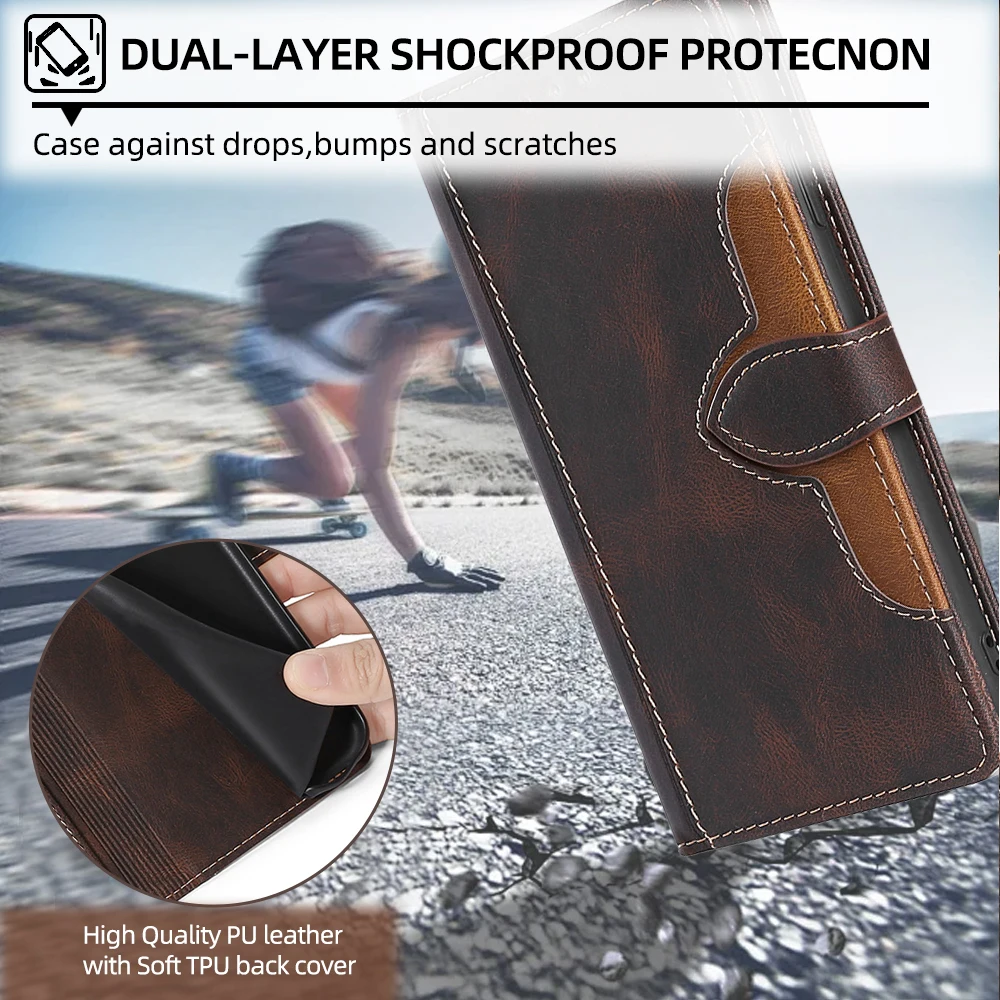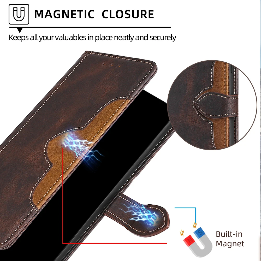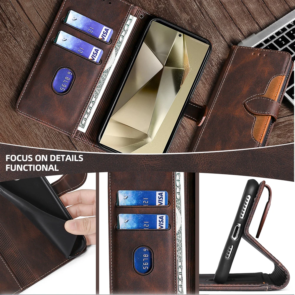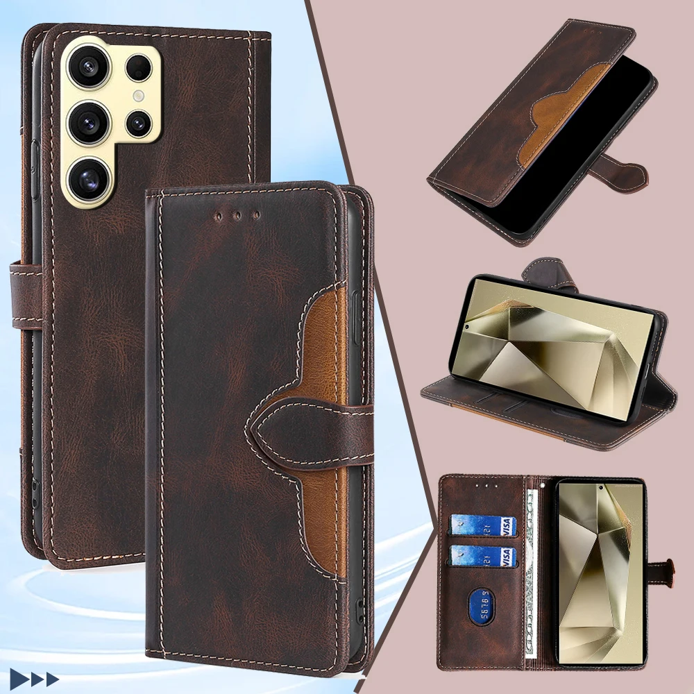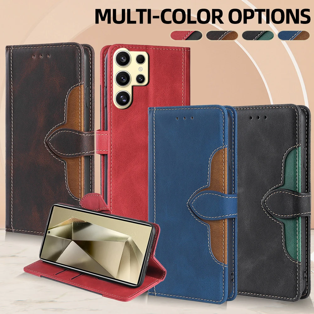 Contrasting Color Flip Magnet Buckle Leather Case For Samsung