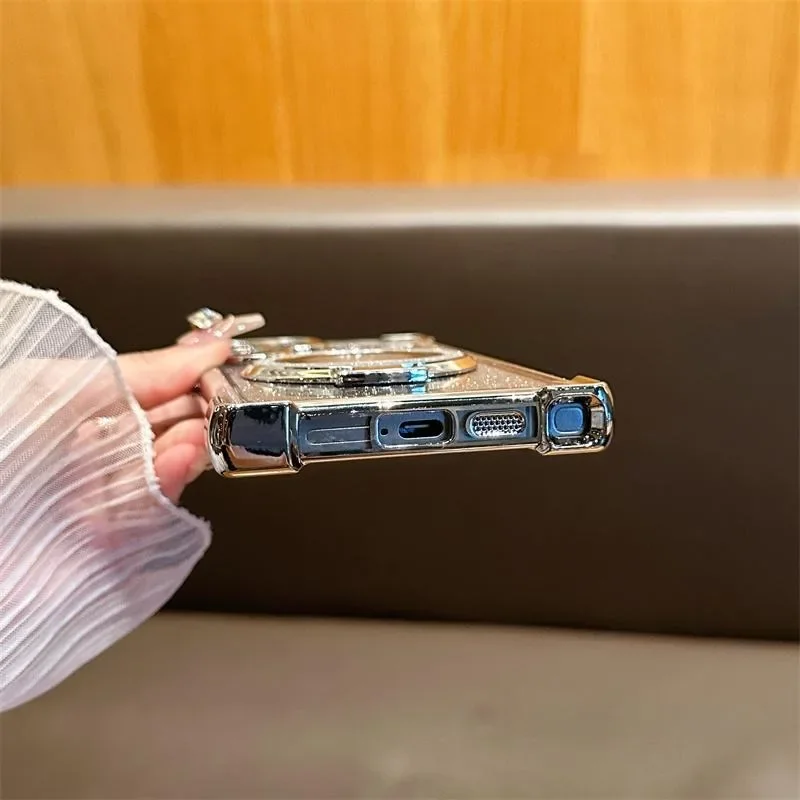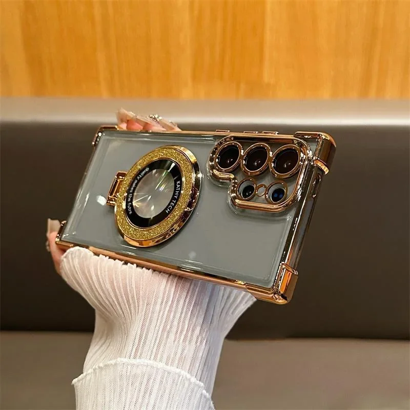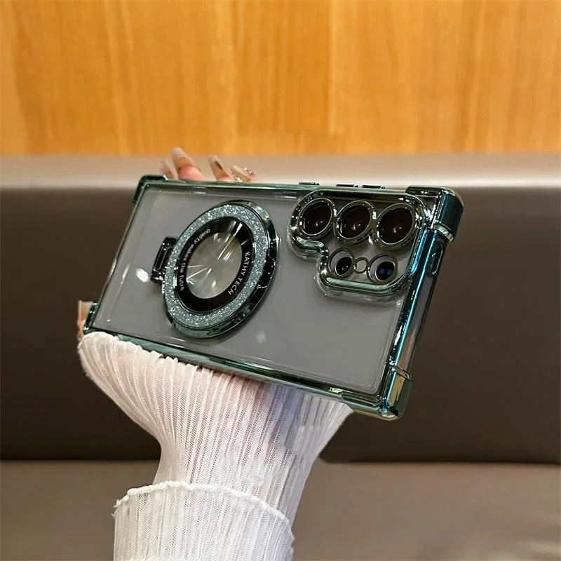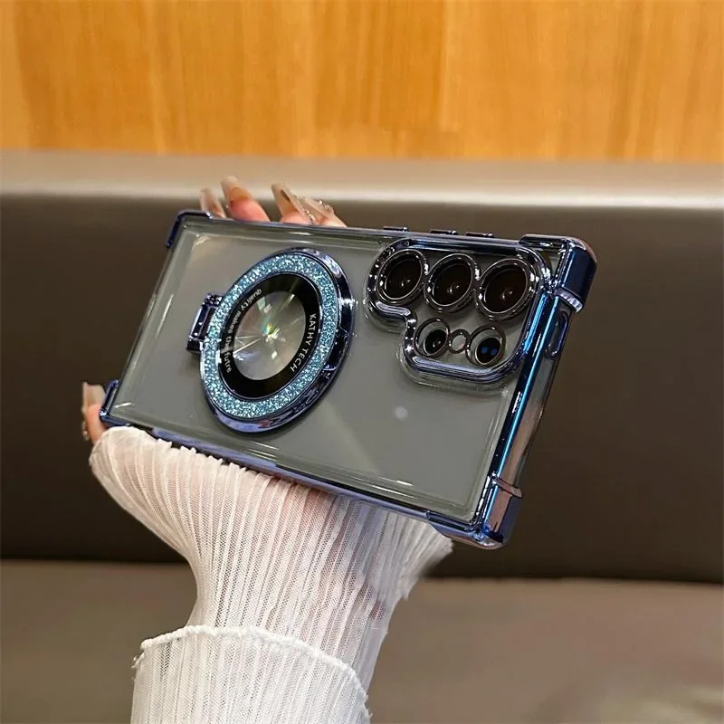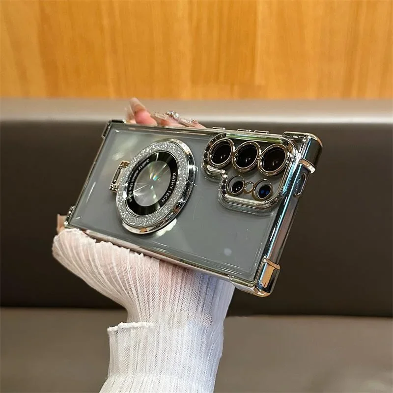 Magsafe Clear Airbag Glitter Magnetic Holder Case for Samsung
