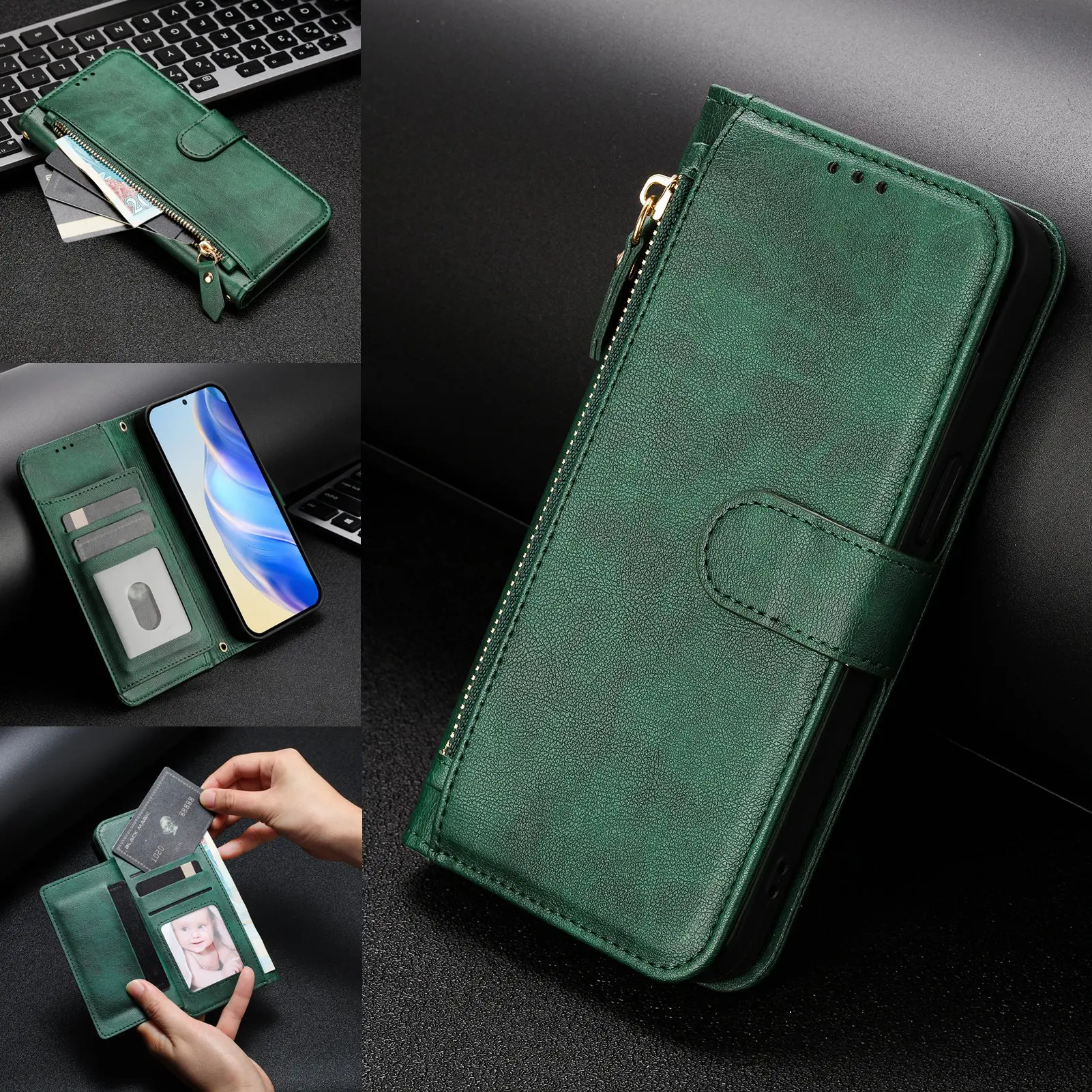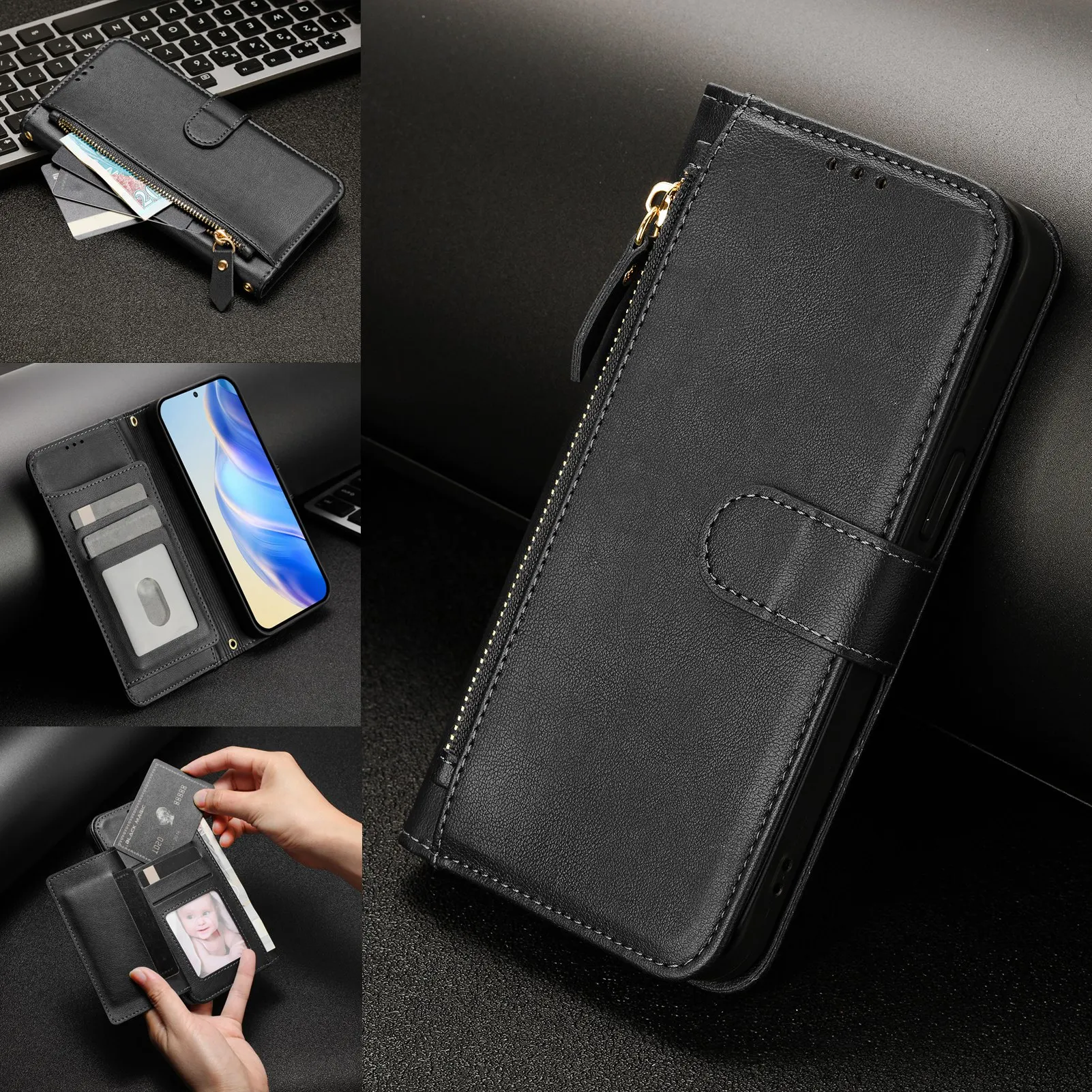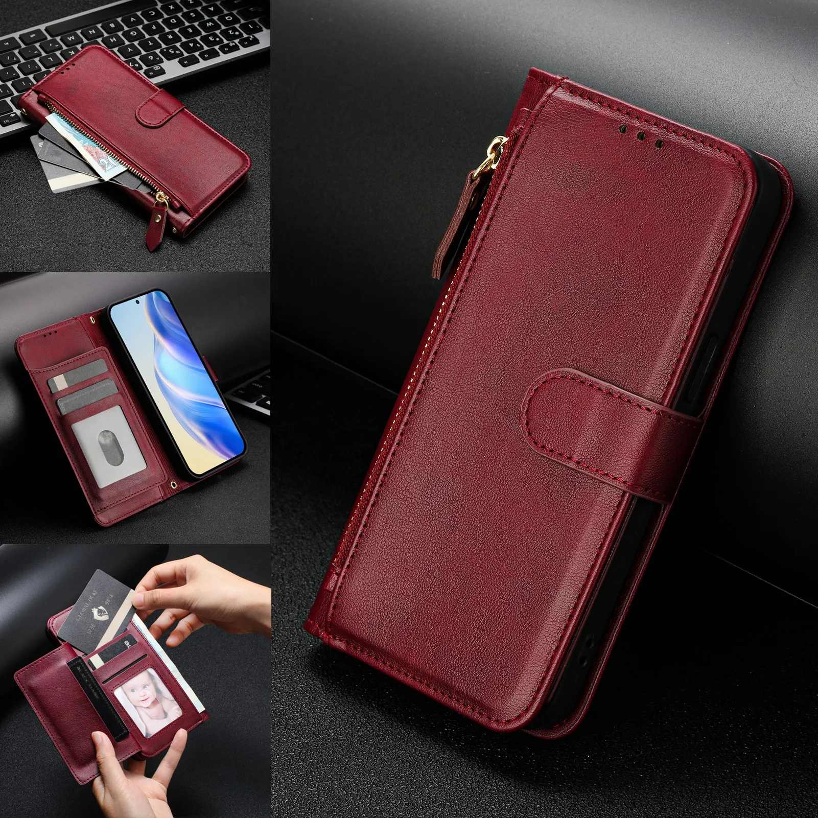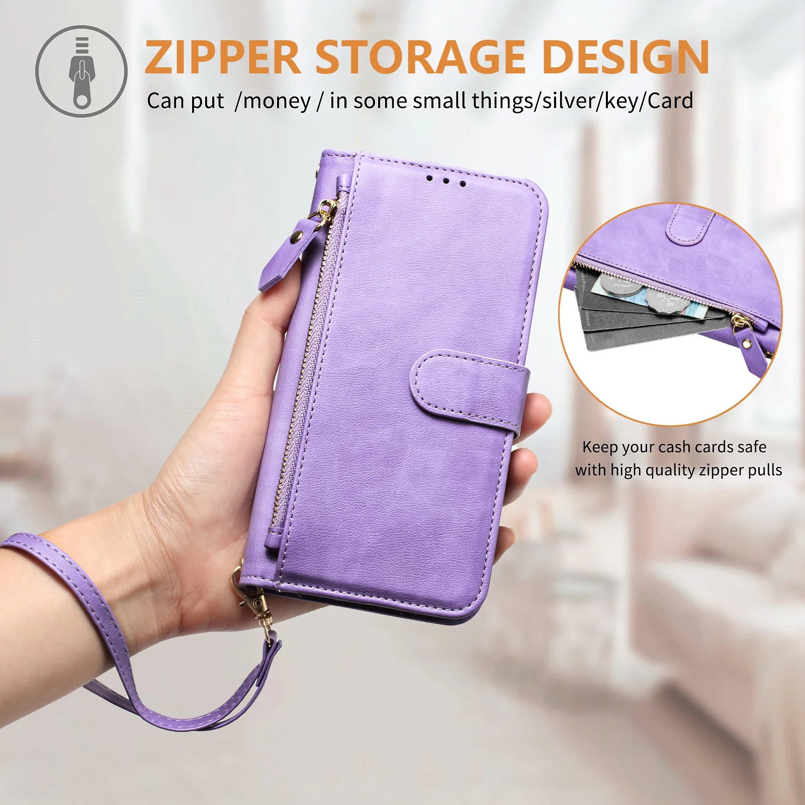 Wristband Zipper Card Slot Leather Wallet Case for Samsung
