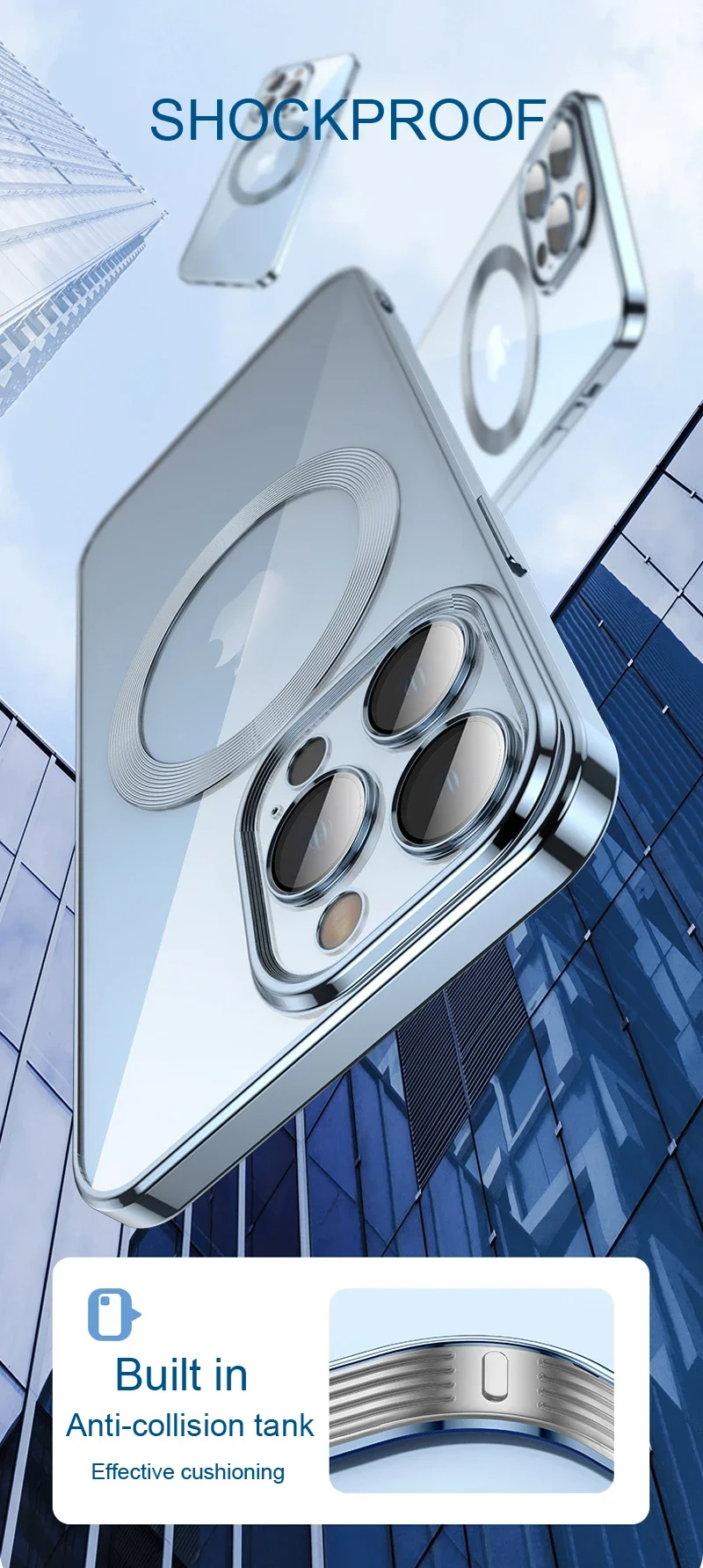Ultra-thin Transparent Plating Magnetic Magsafe Case for IPhone