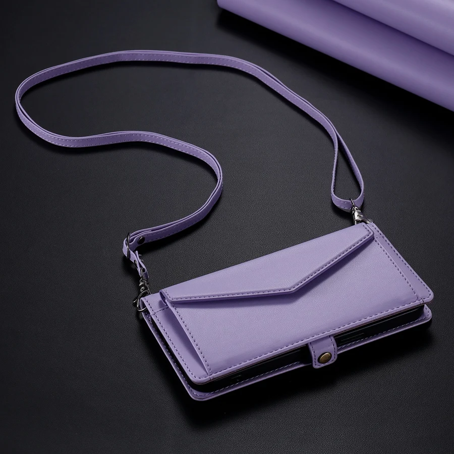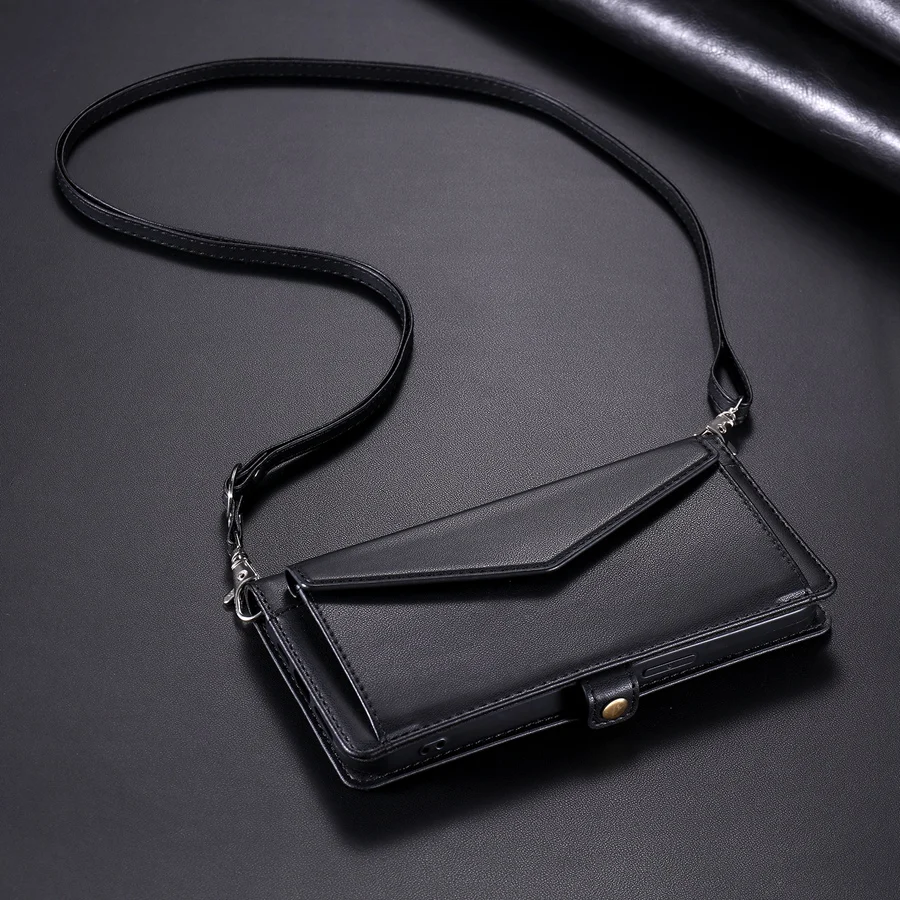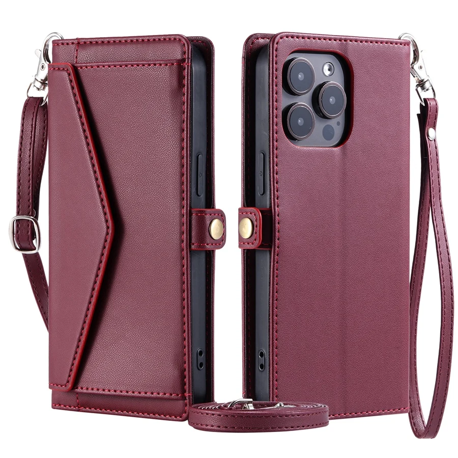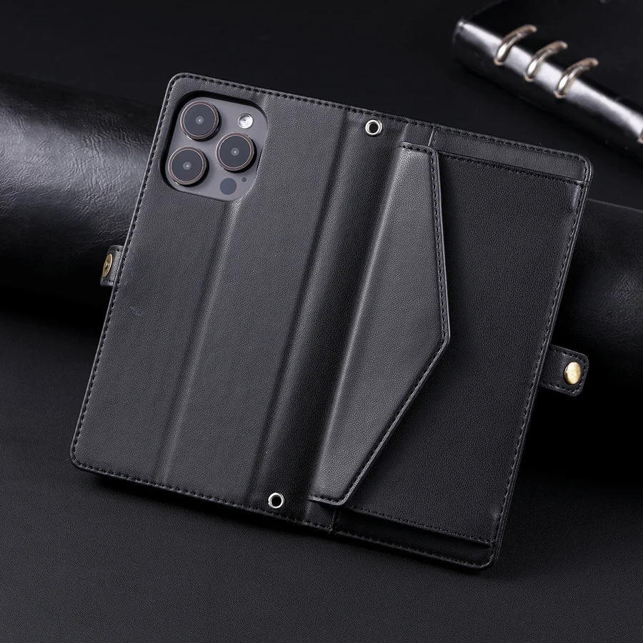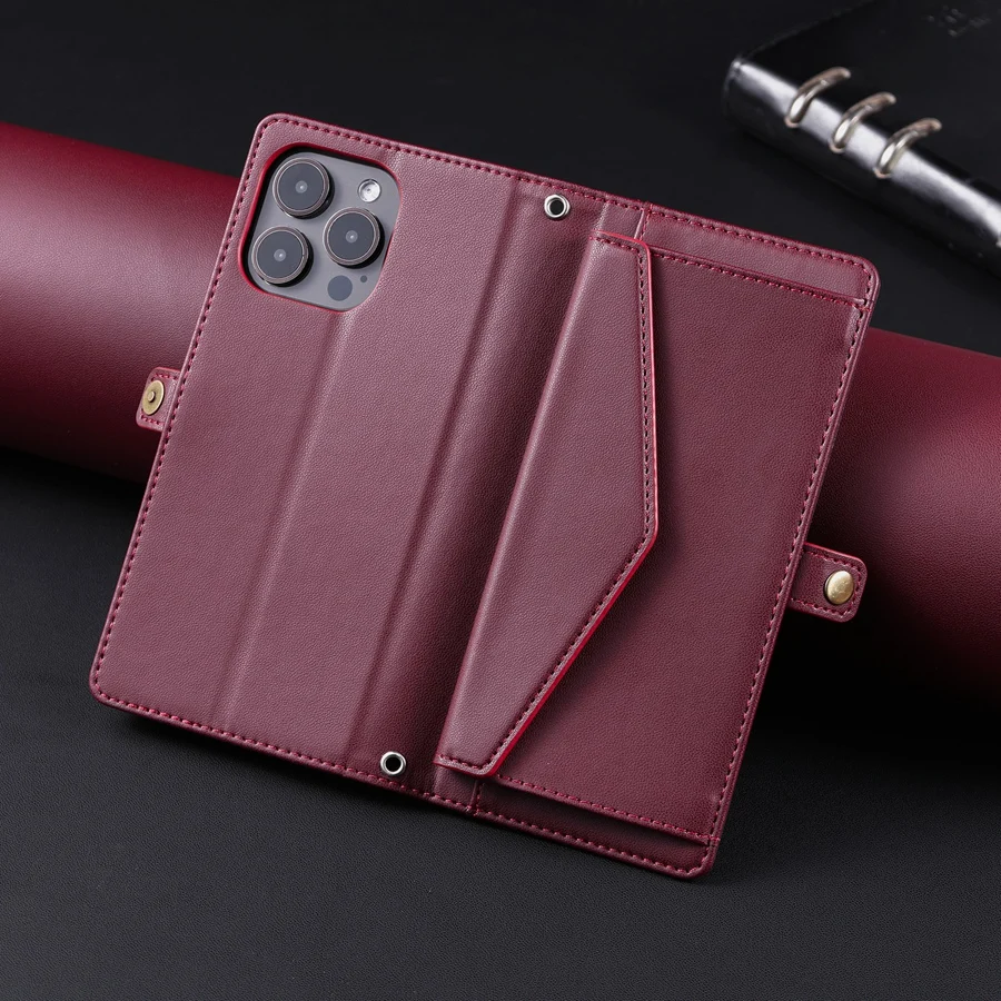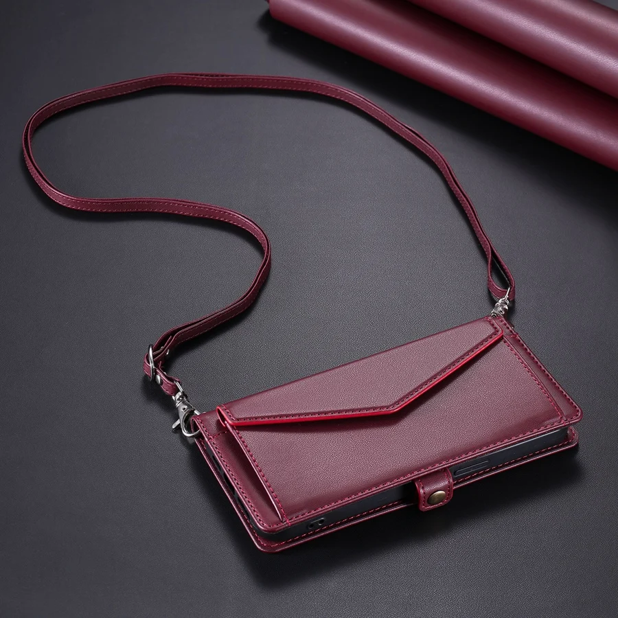 Lanyard Flip Dual Layer Card Slots Wallet Case for iPhone