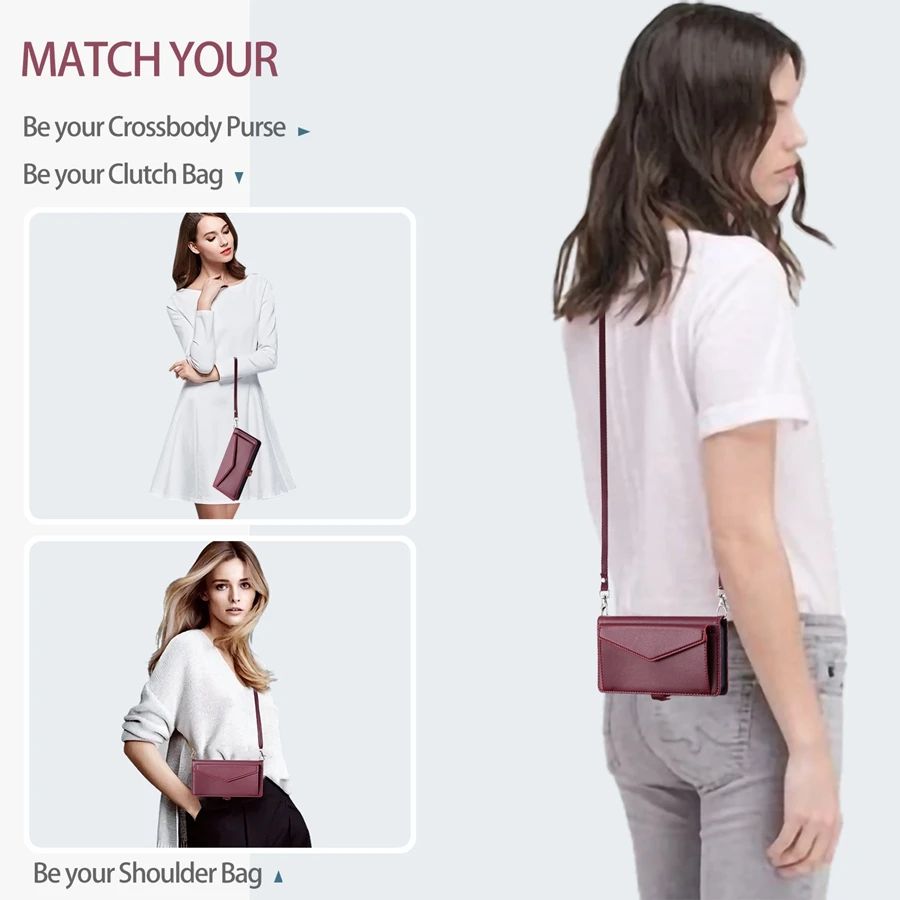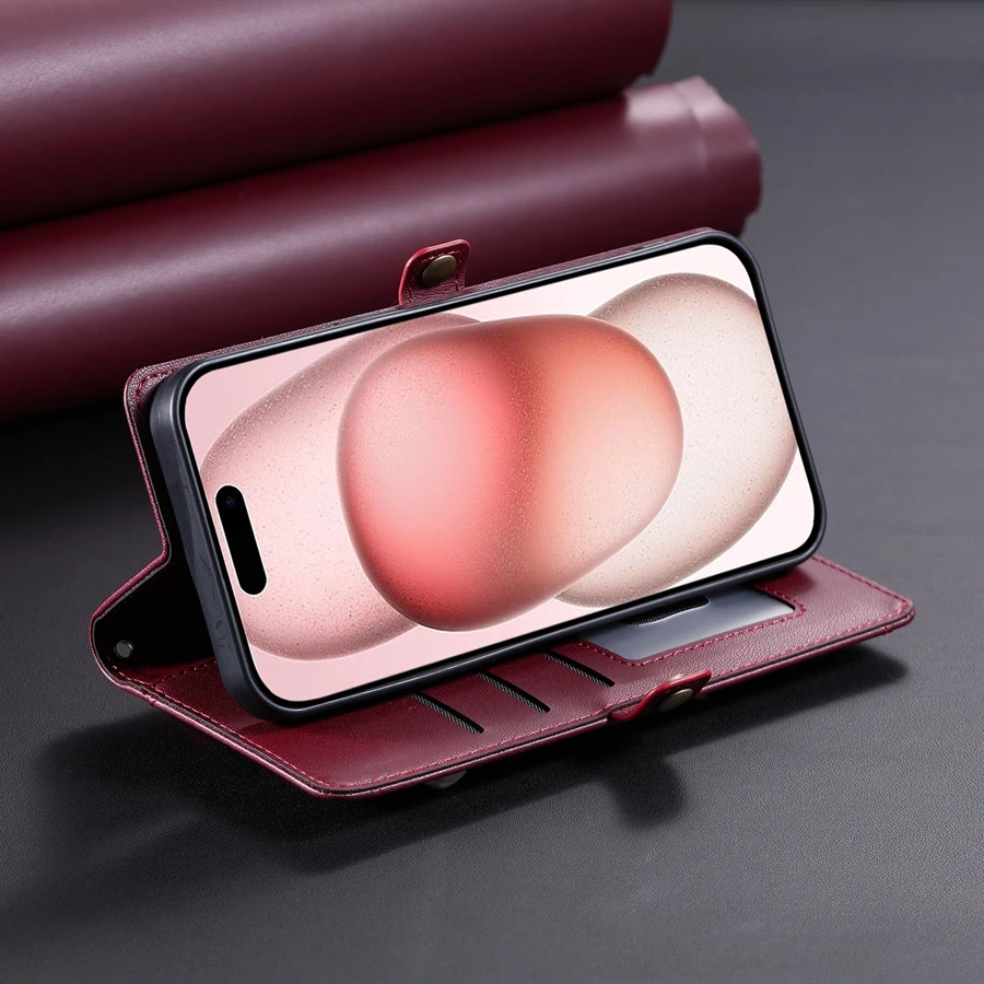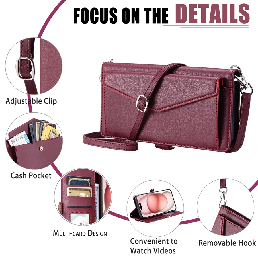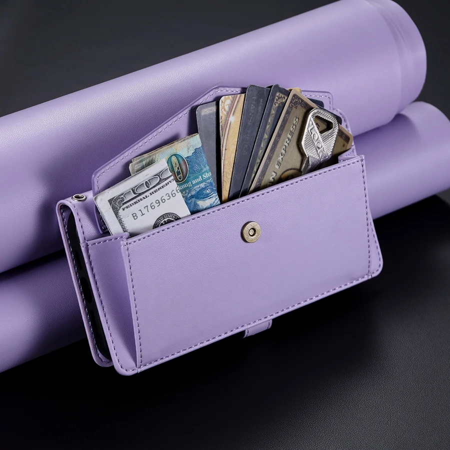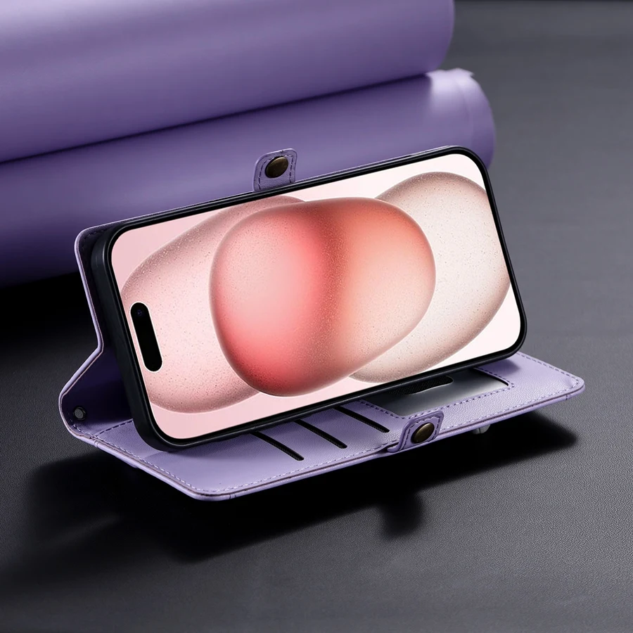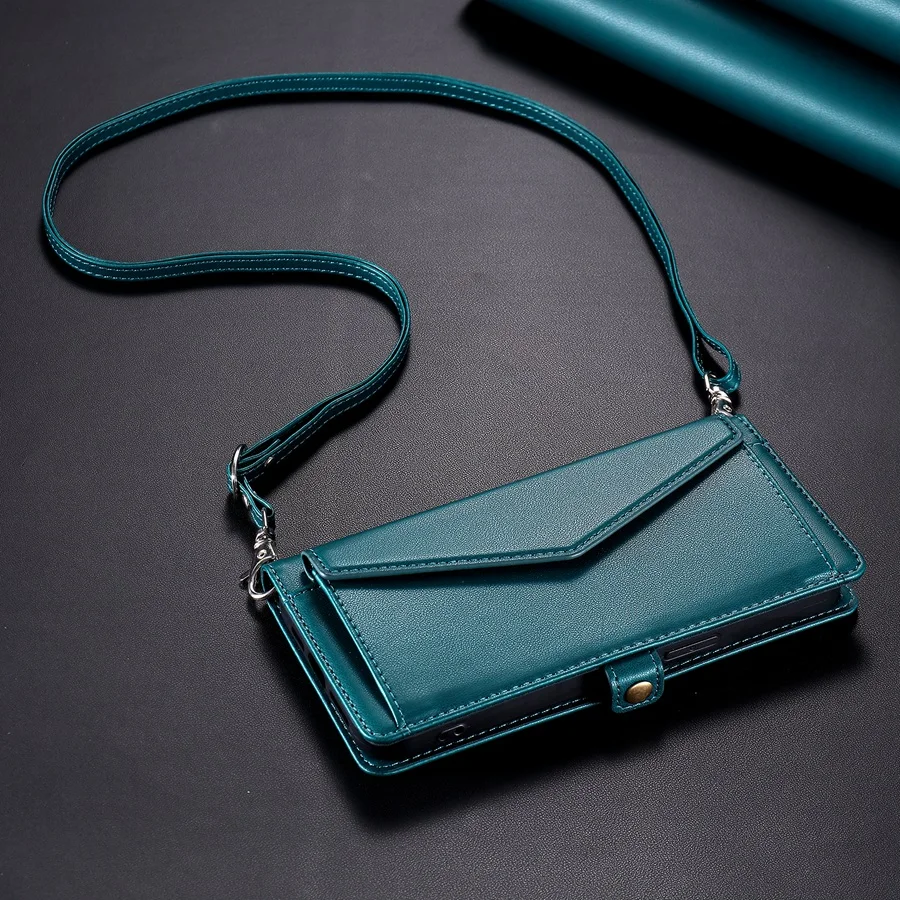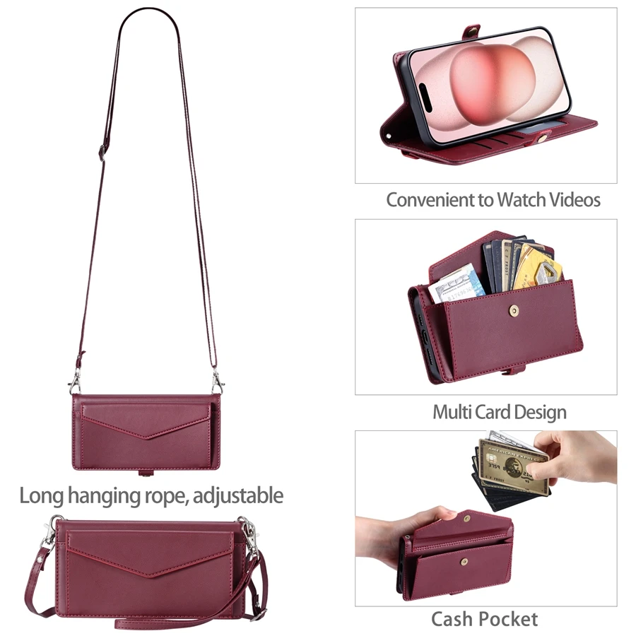 Lanyard Flip Dual Layer Card Slots Wallet Case for iPhone