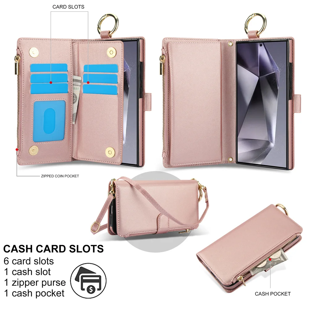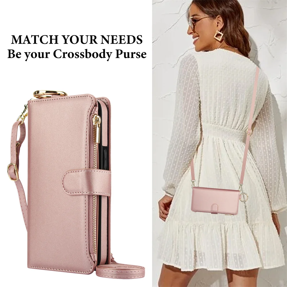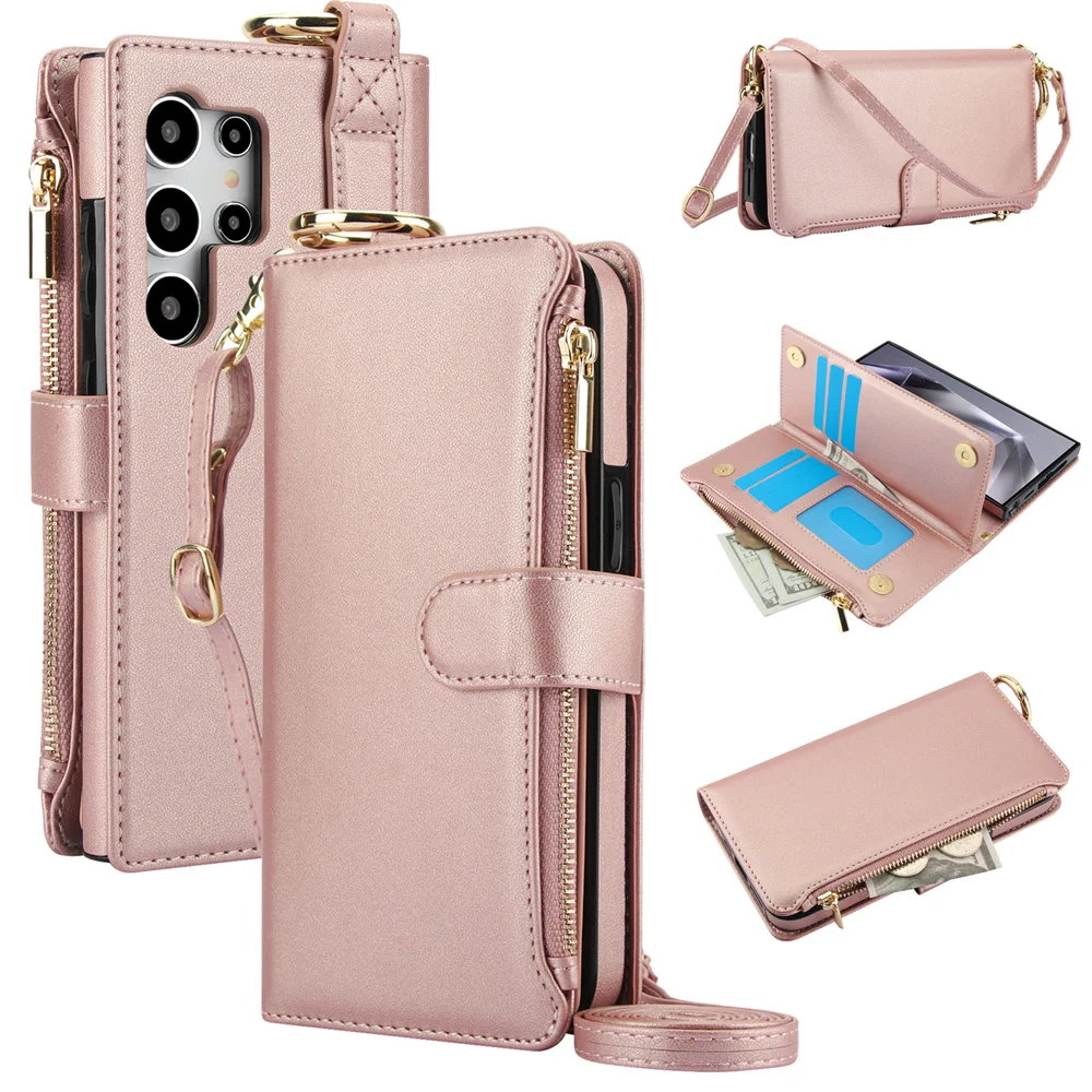 Crossbody Leather Wallet Case for Samsung