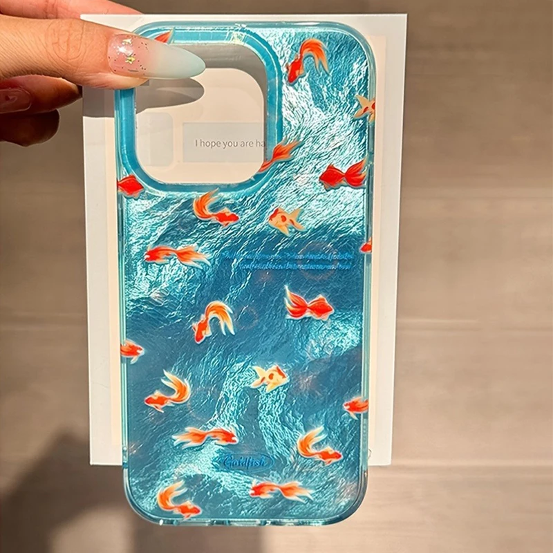 Blue Ocean Red Carp Vortex Pattern Case For iPhone
