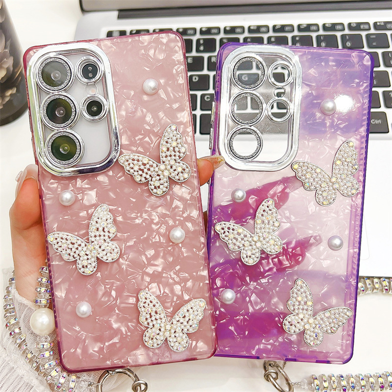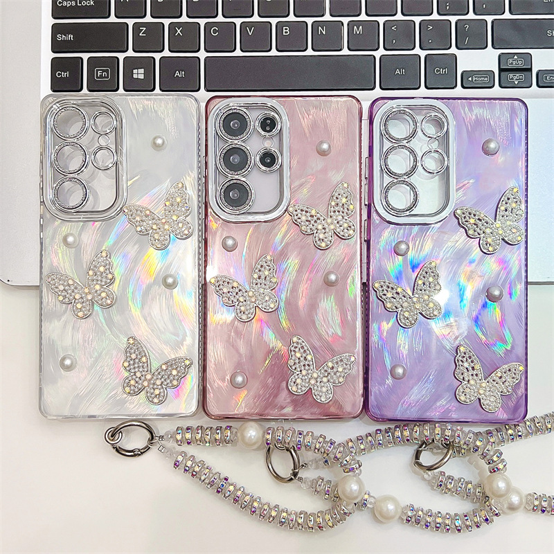 3D Pearl Butterfly Electroplating Case For Samsung