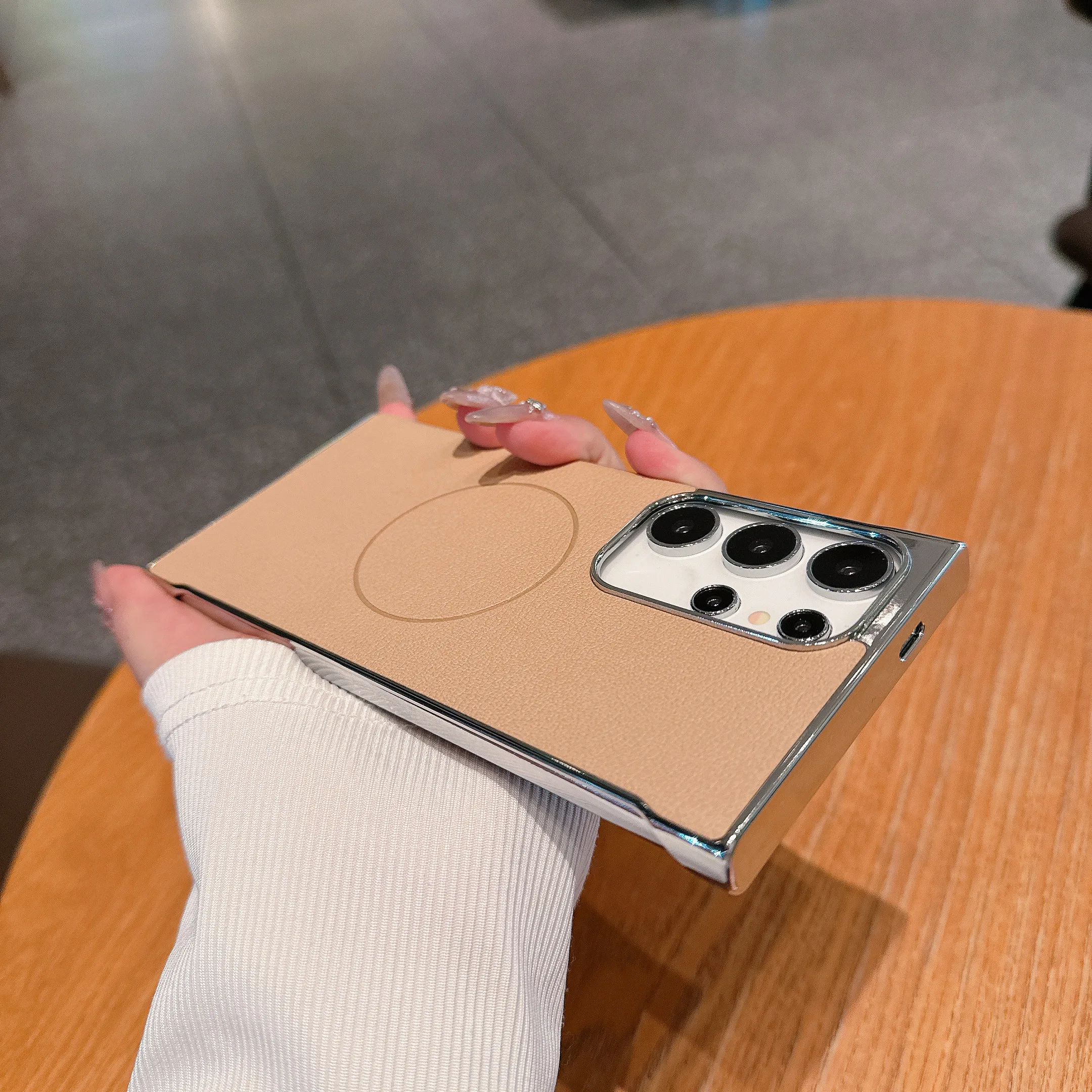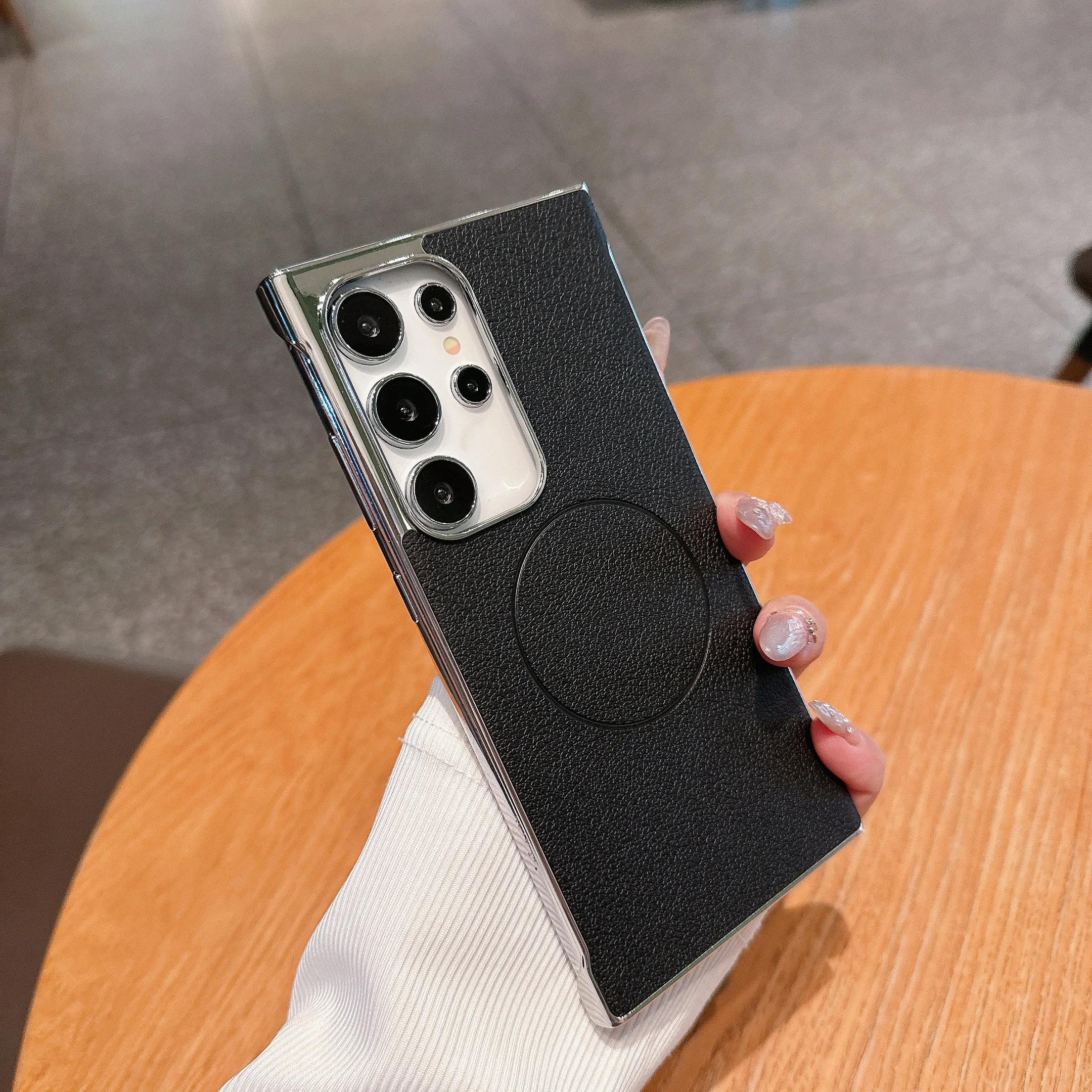 Magsafe Magnetic Ultra-thin Plating Frameless Leather Case For Samsung