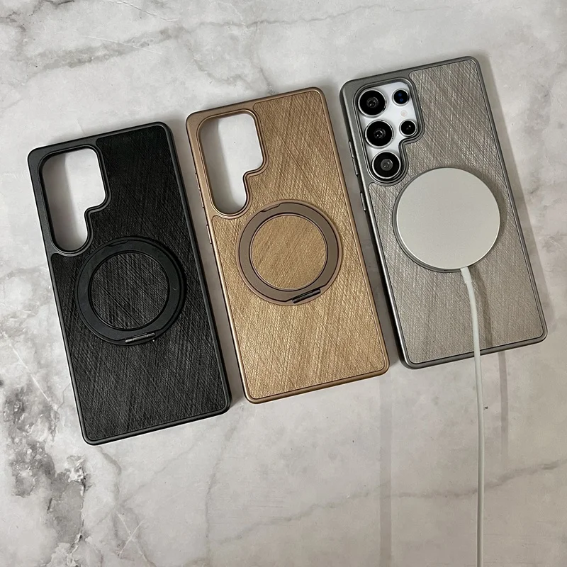 Golden Thread Texture MagSafe 360° Rotating Kickstand Case for Samsung