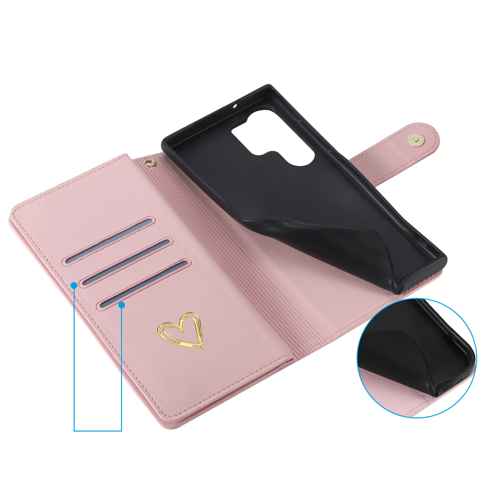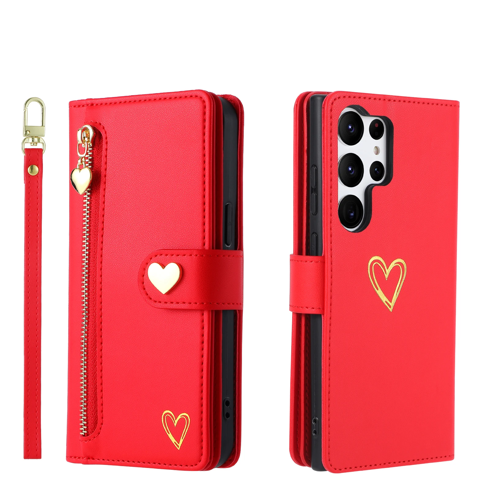 Gold Hot Stamping Love Zipper Card Wallet Case For Samsung
