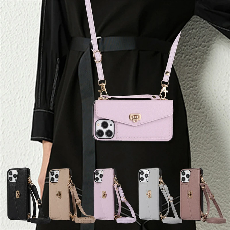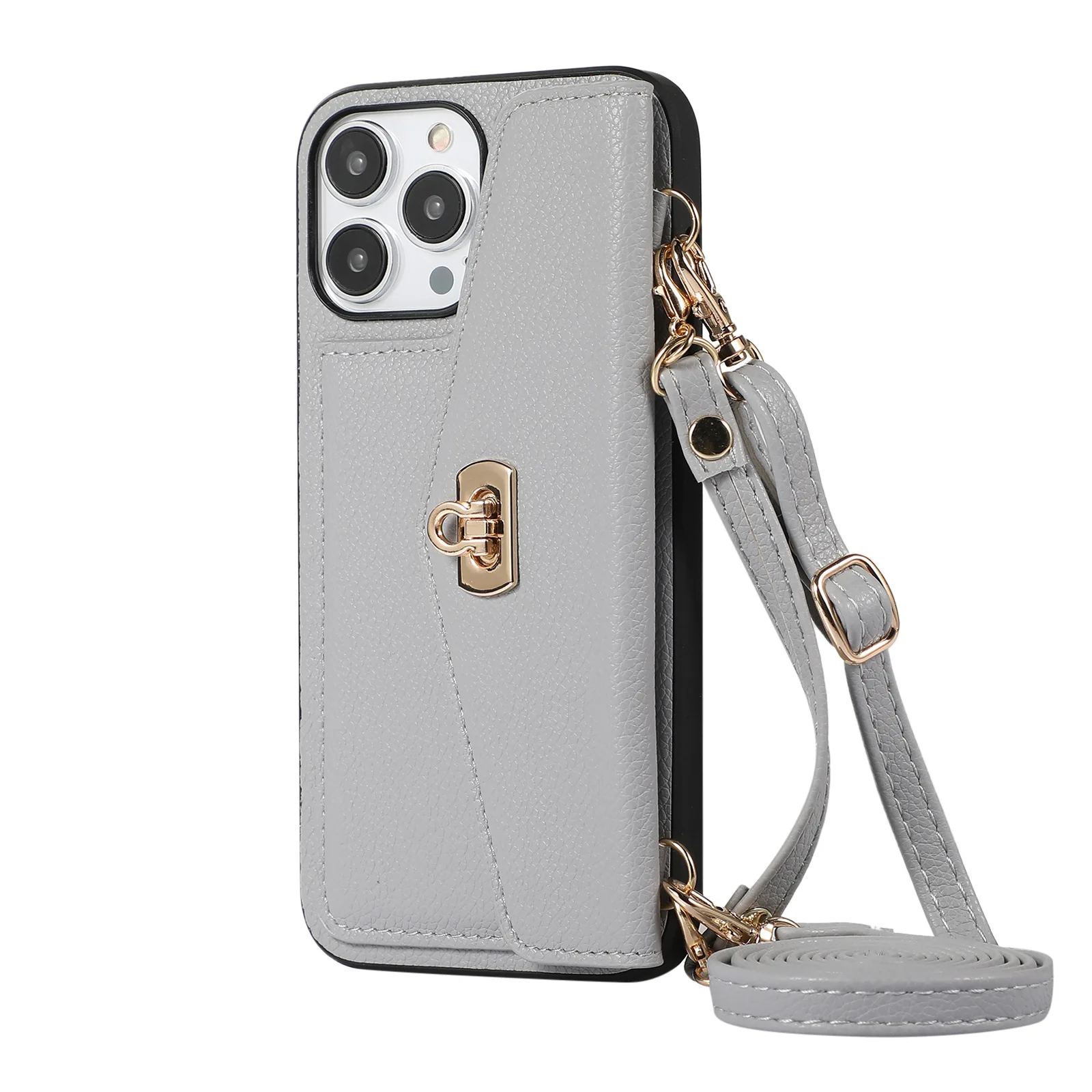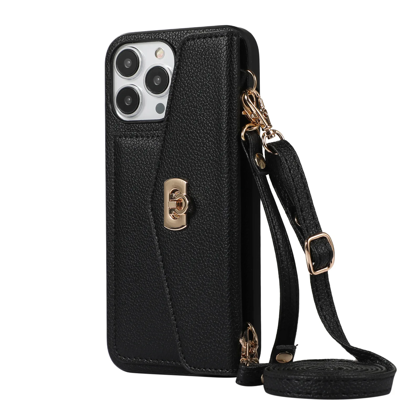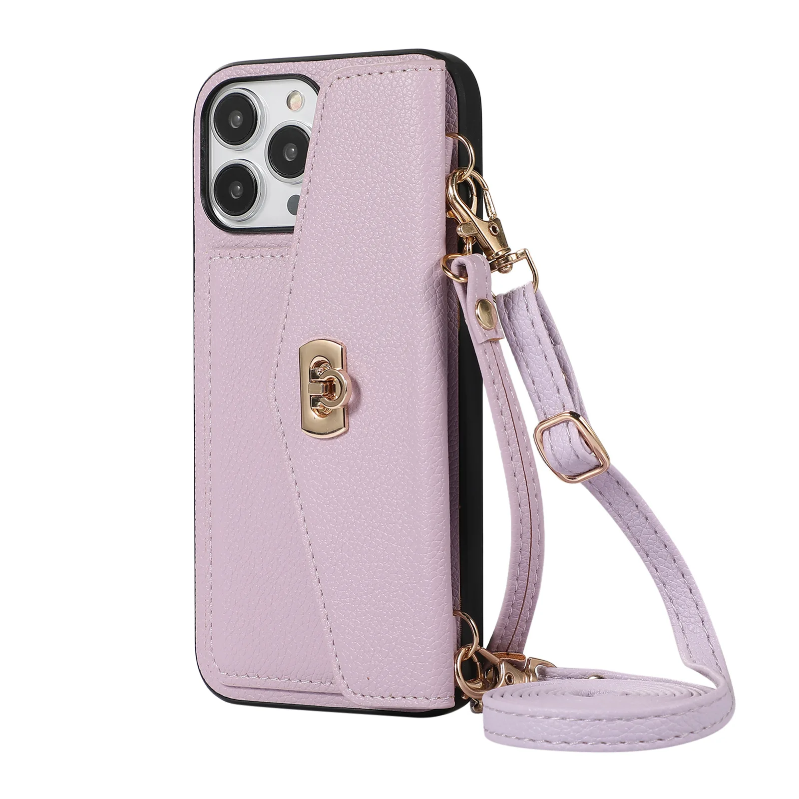 Shoulder Strap Card Pocket Wallet Leather Case for iPhone