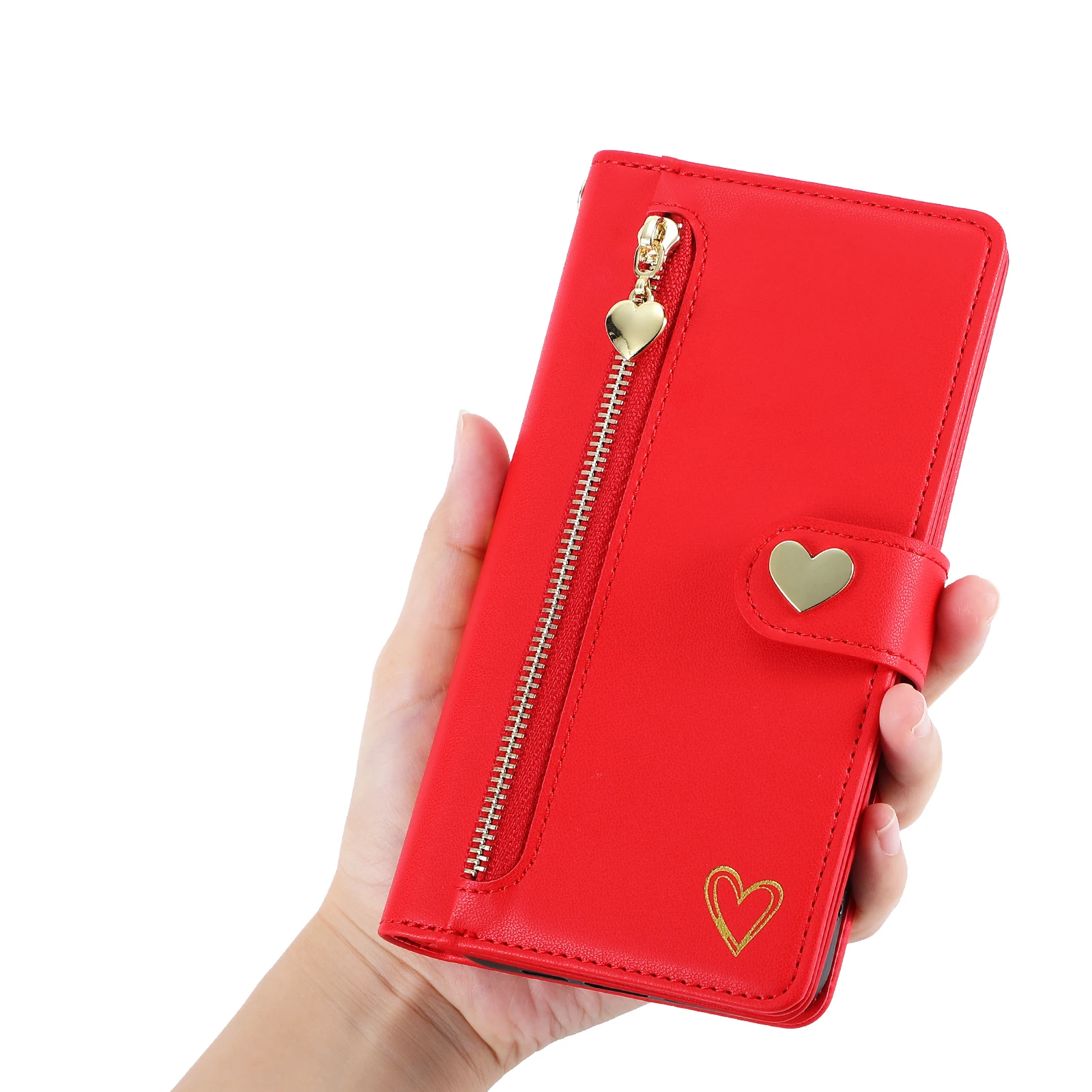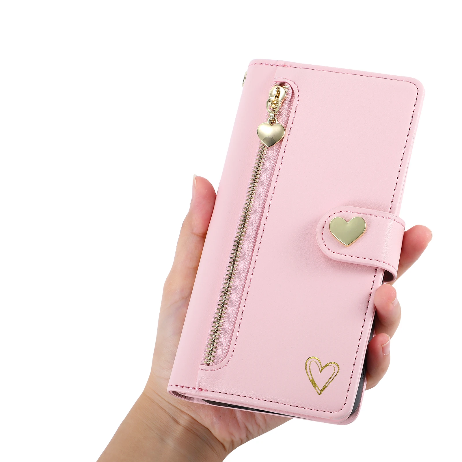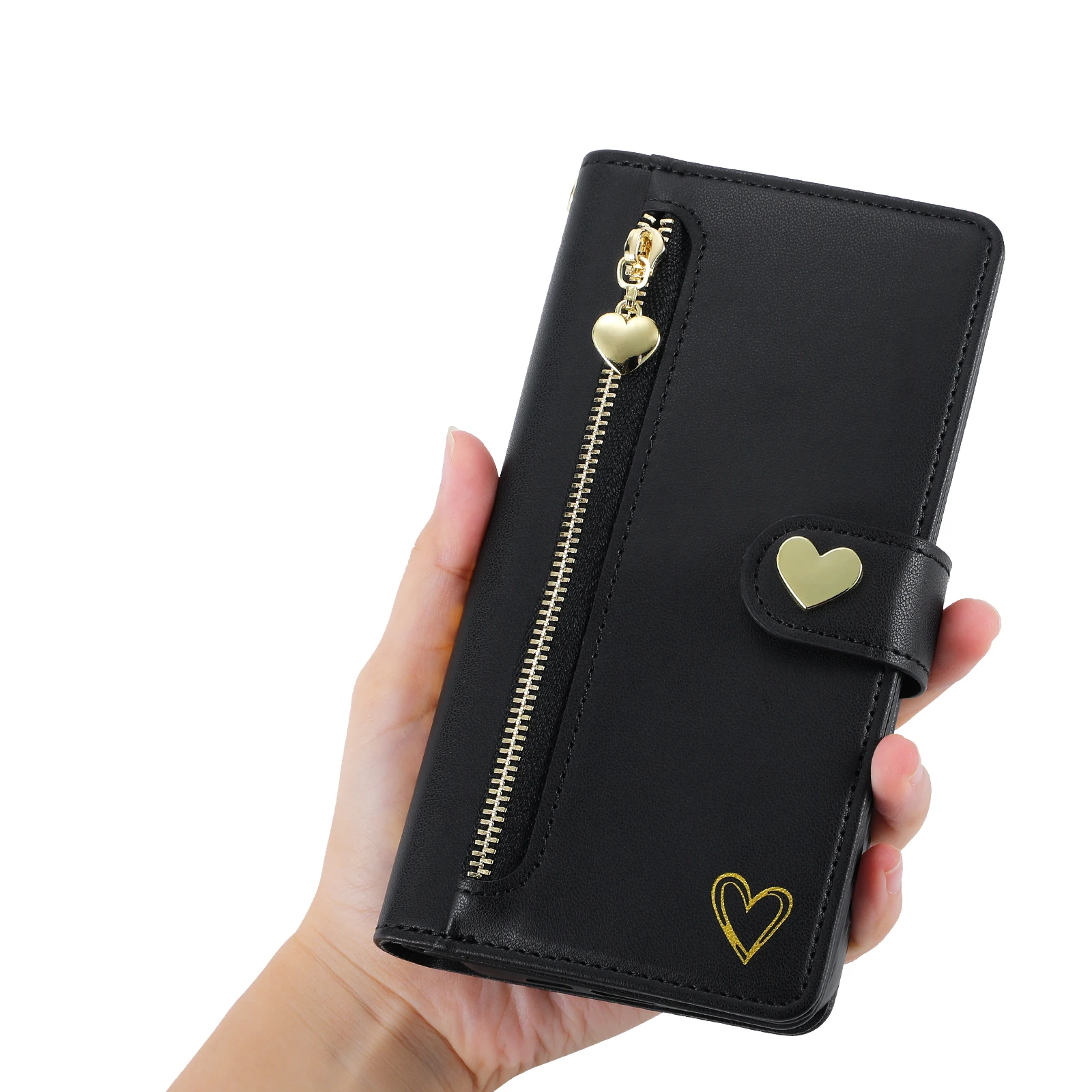 Gold Hot Stamping Love Zipper Card Wallet Case For iPhone