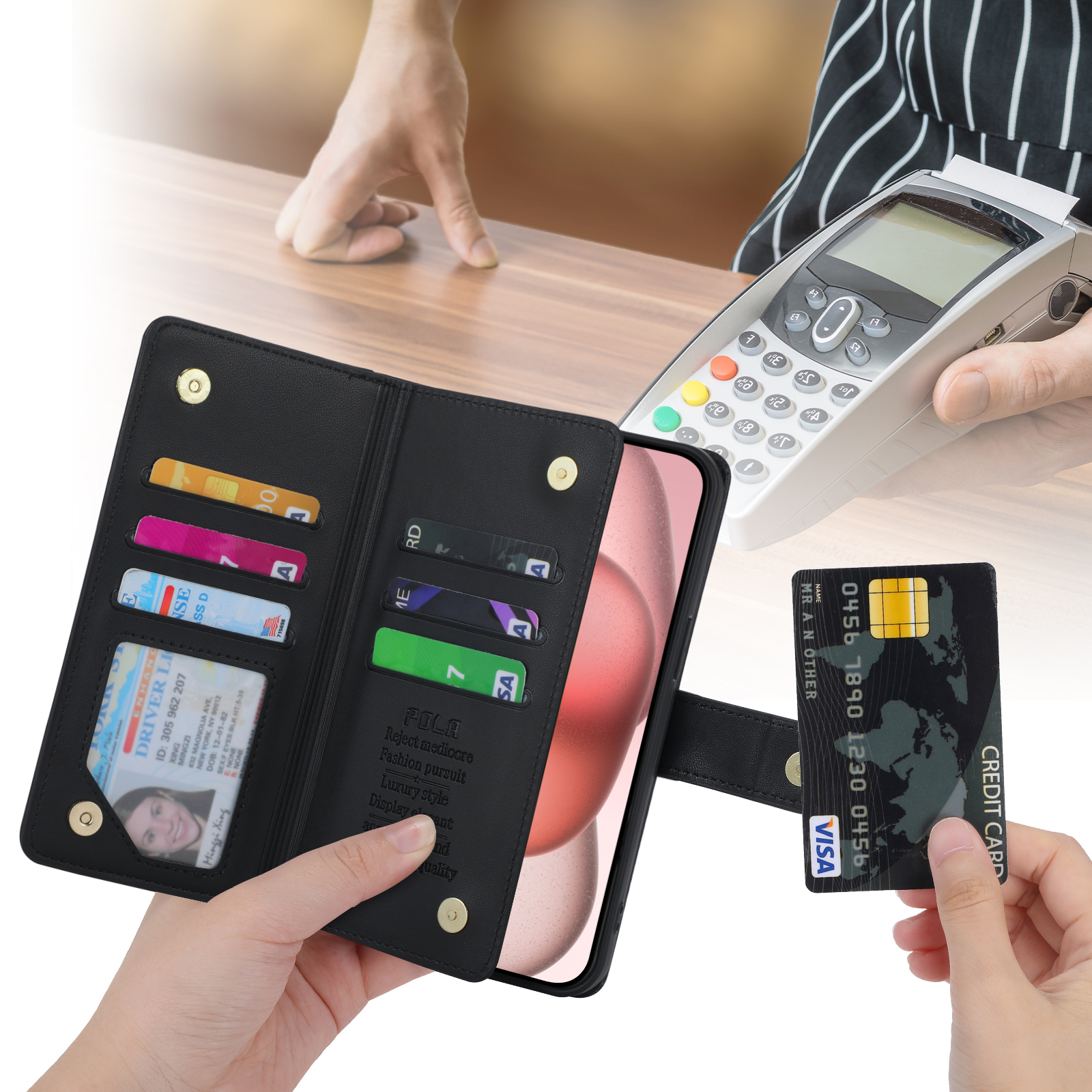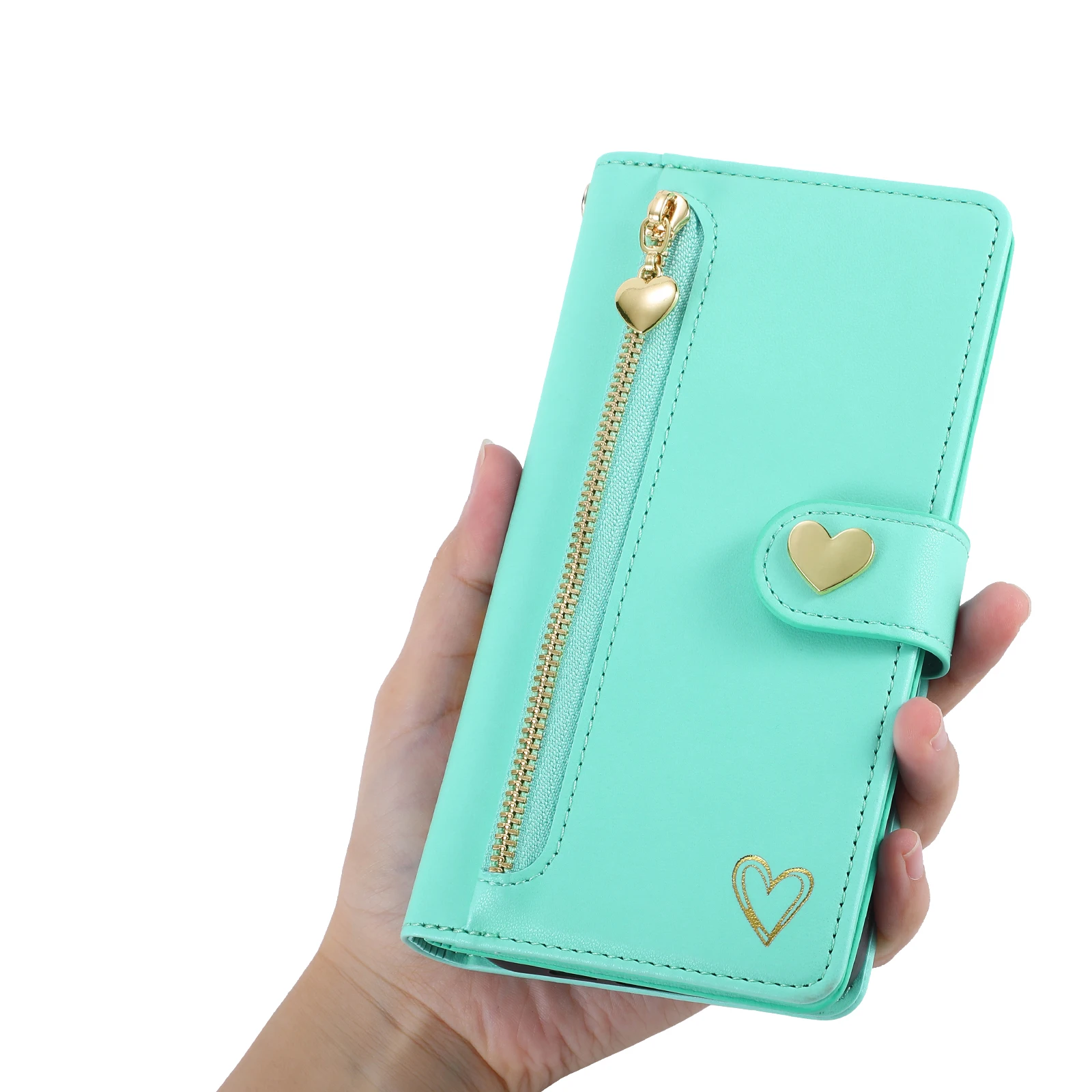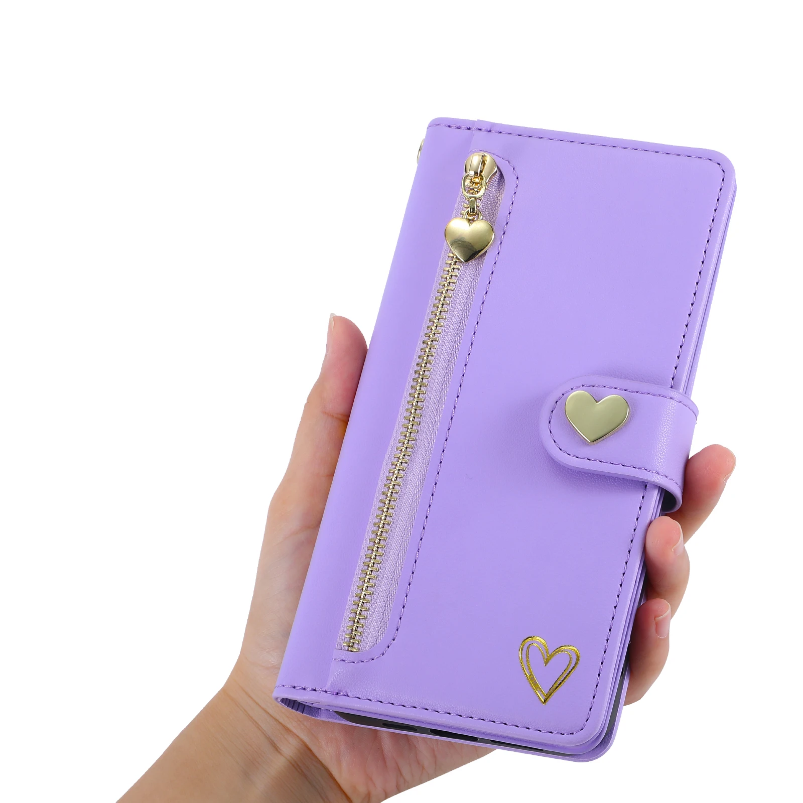 Gold Hot Stamping Love Zipper Card Wallet Case For iPhone