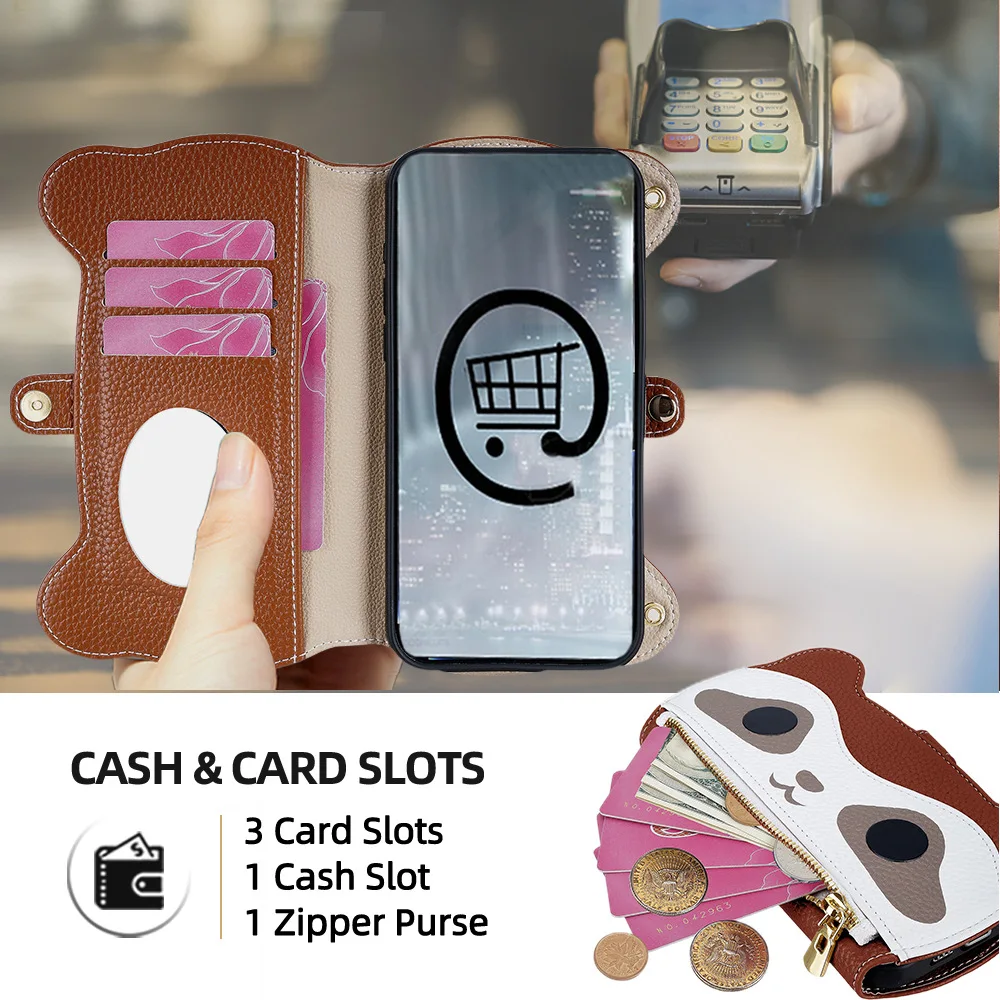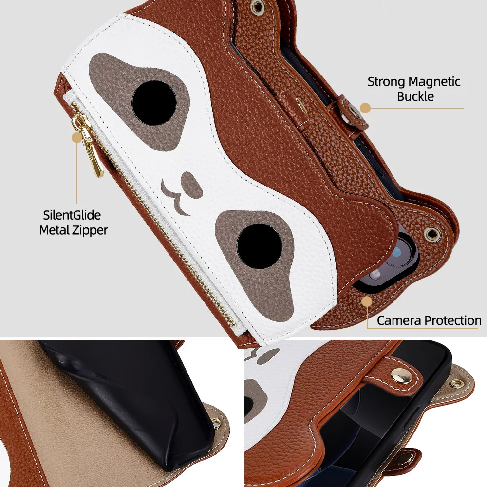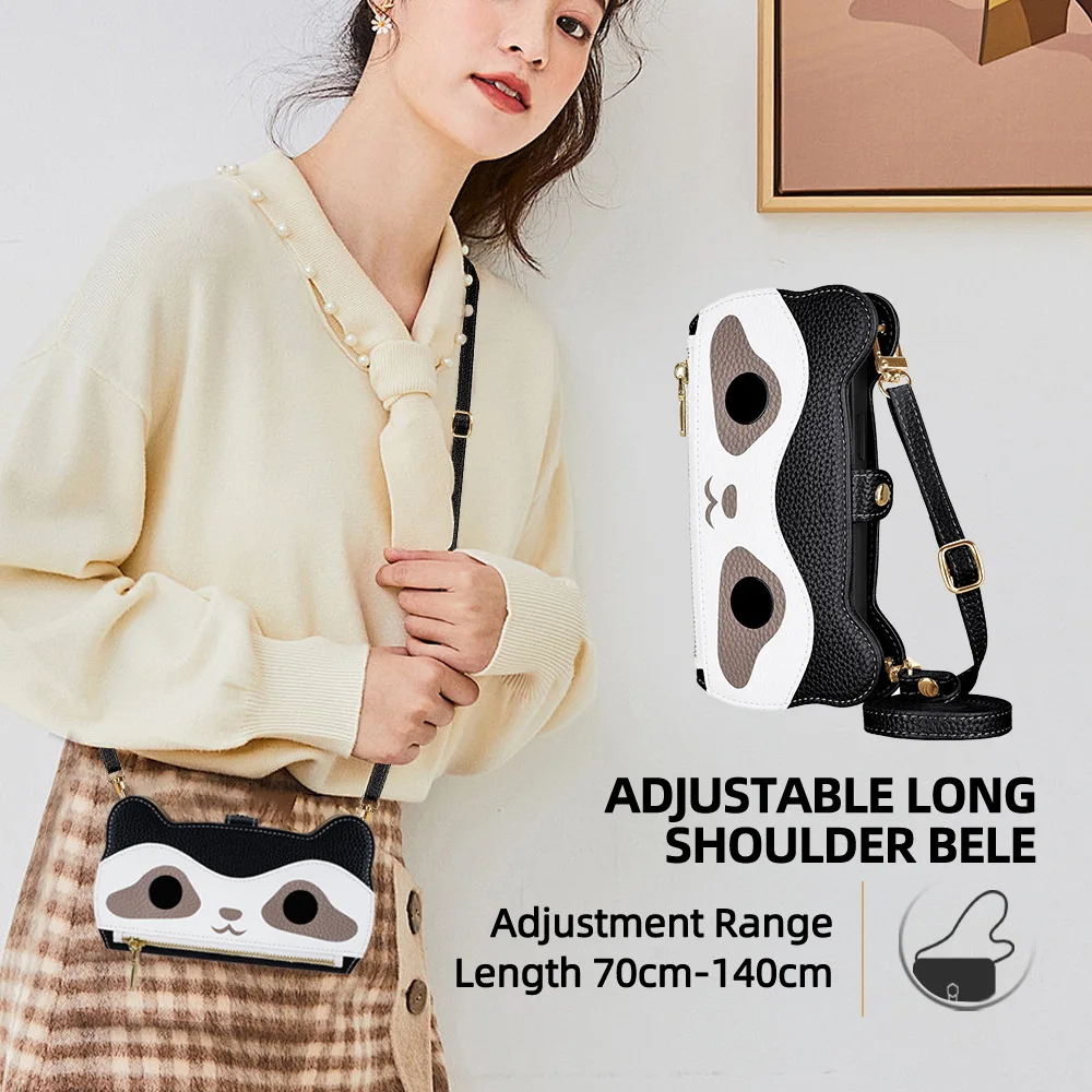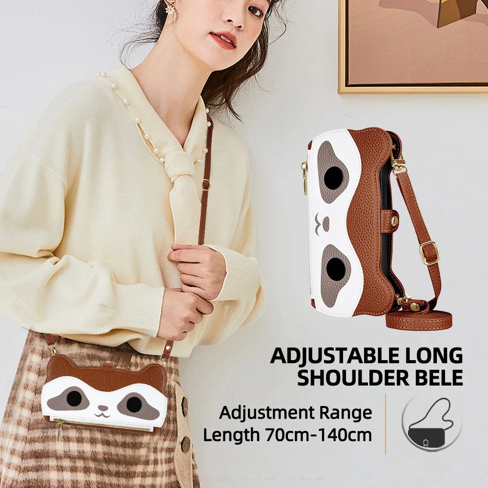 Cute Raccoon Crossbody Wallet Case For iPhone