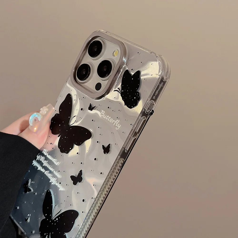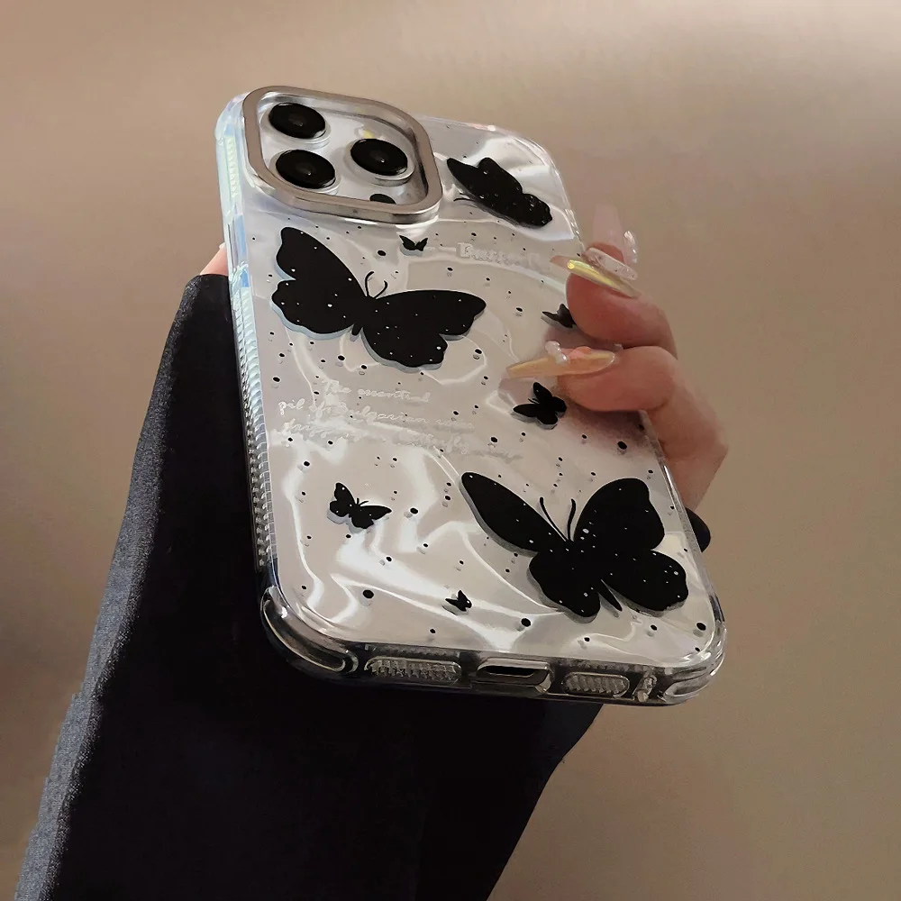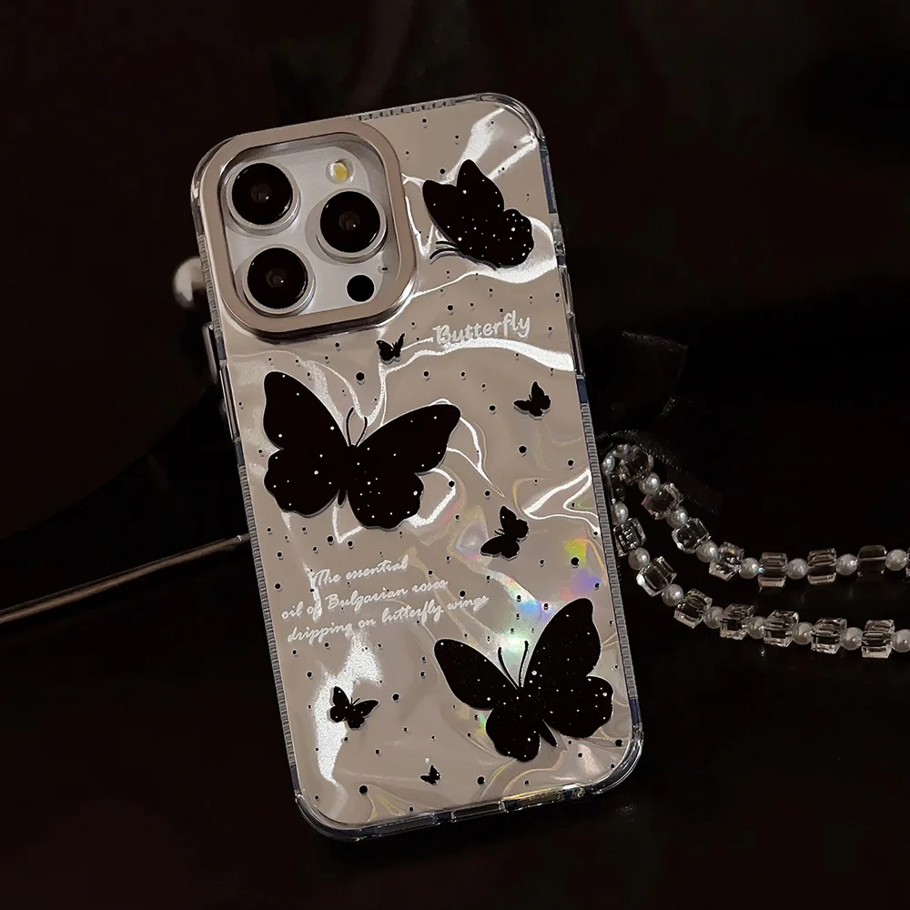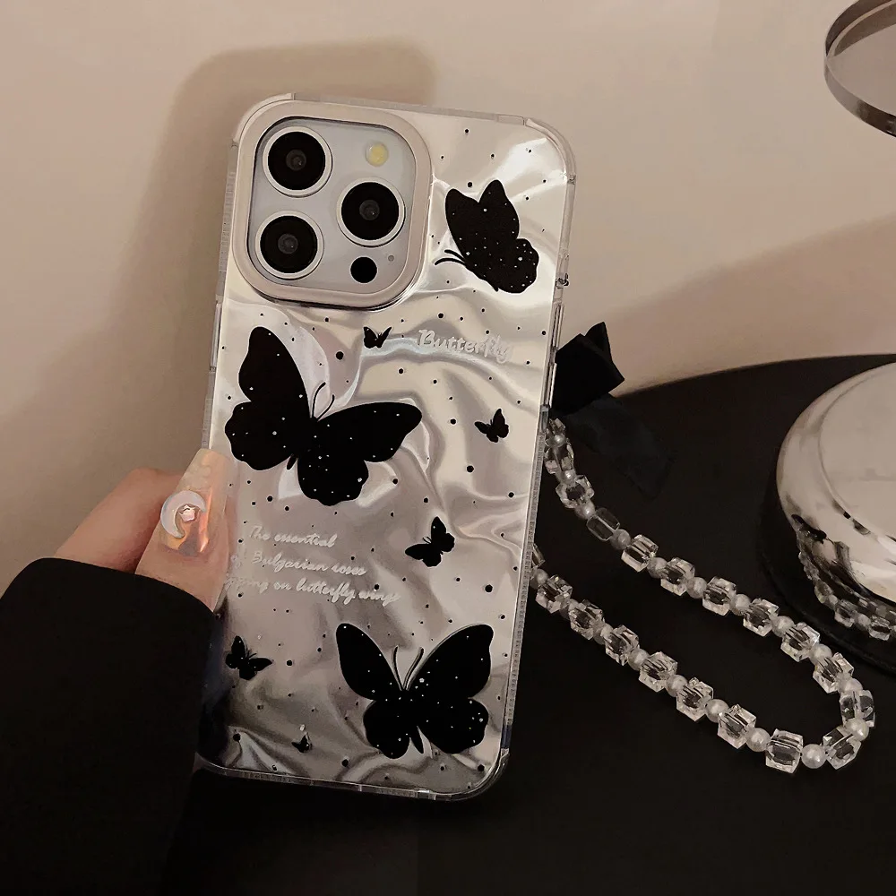 Luxury Black Butterfly Case With Bowknot Lanyard For iPhone