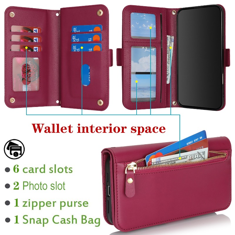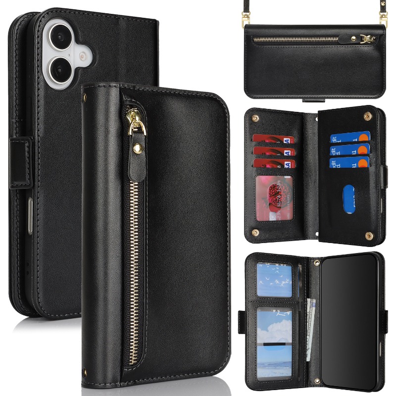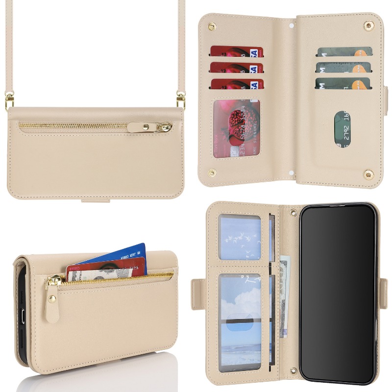 Crossbody Zipper Wallet Multi-Card Slot Flip Leather Case For iPhone