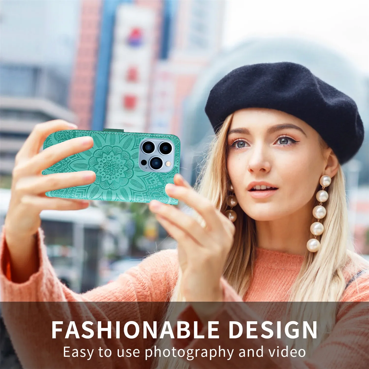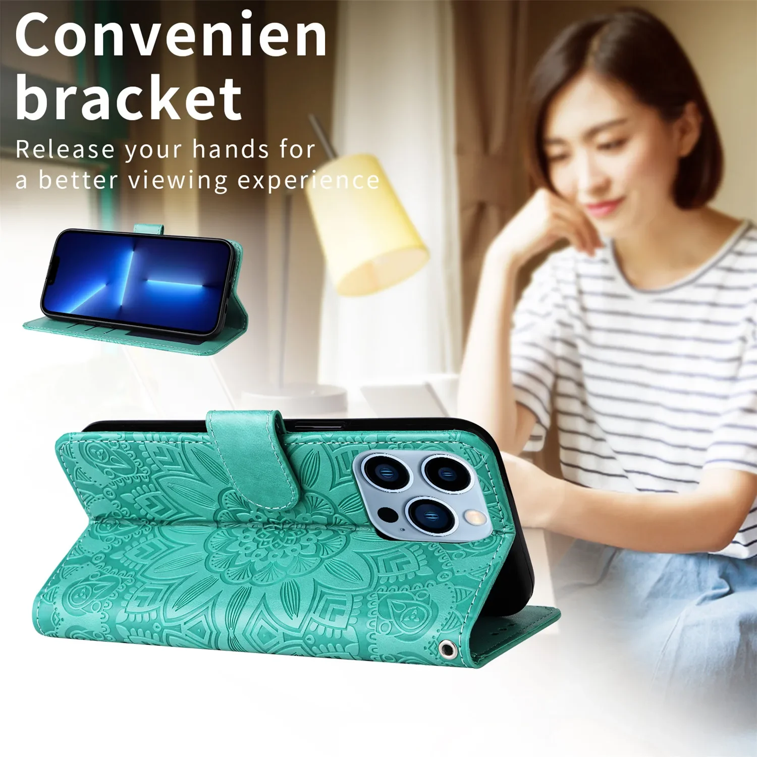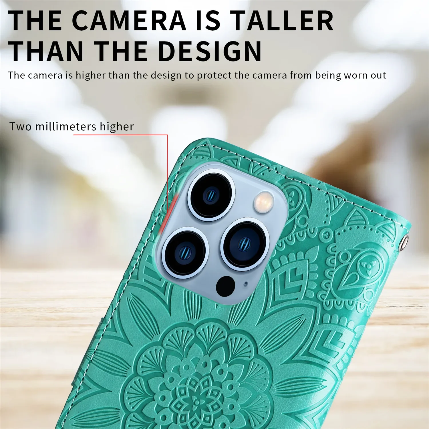 Embossing Leather Flip Wallet Phone Case For iPhone