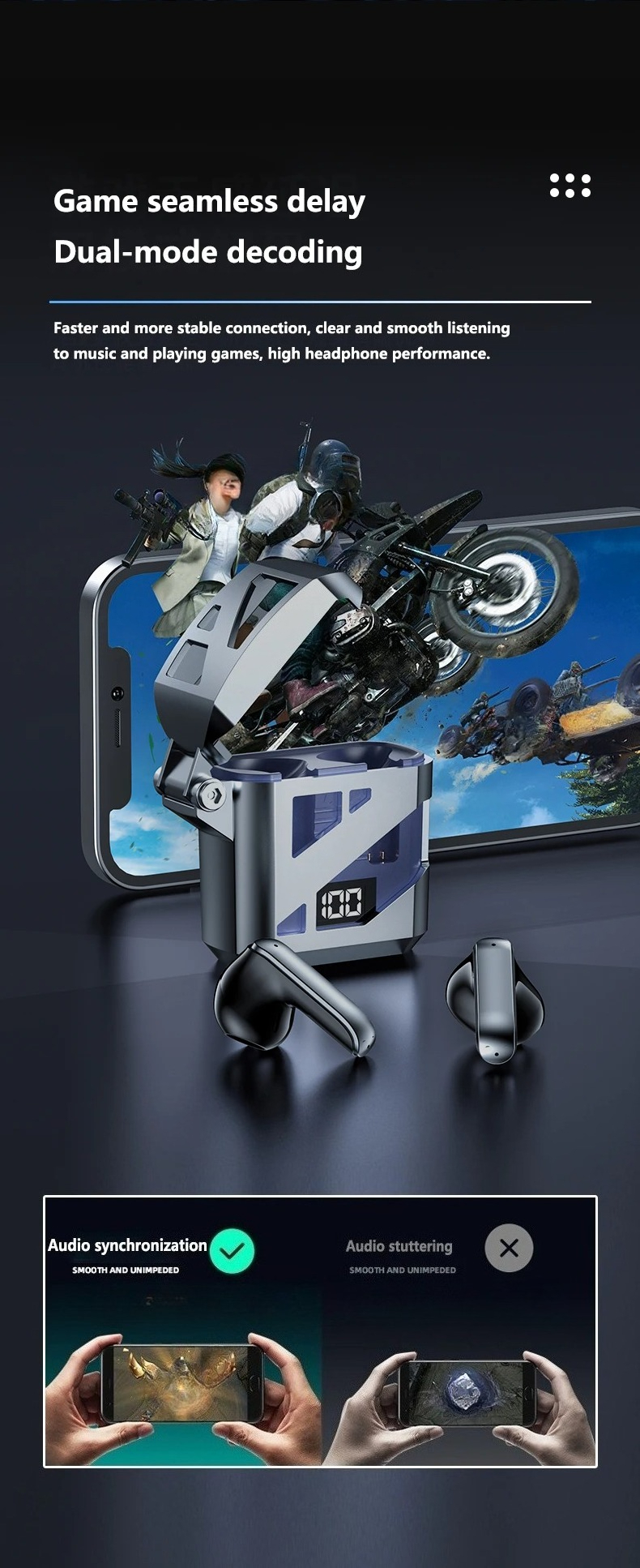 Hands-free Wireless Smart Sports Stereo Bluetooth Headset with Microphone