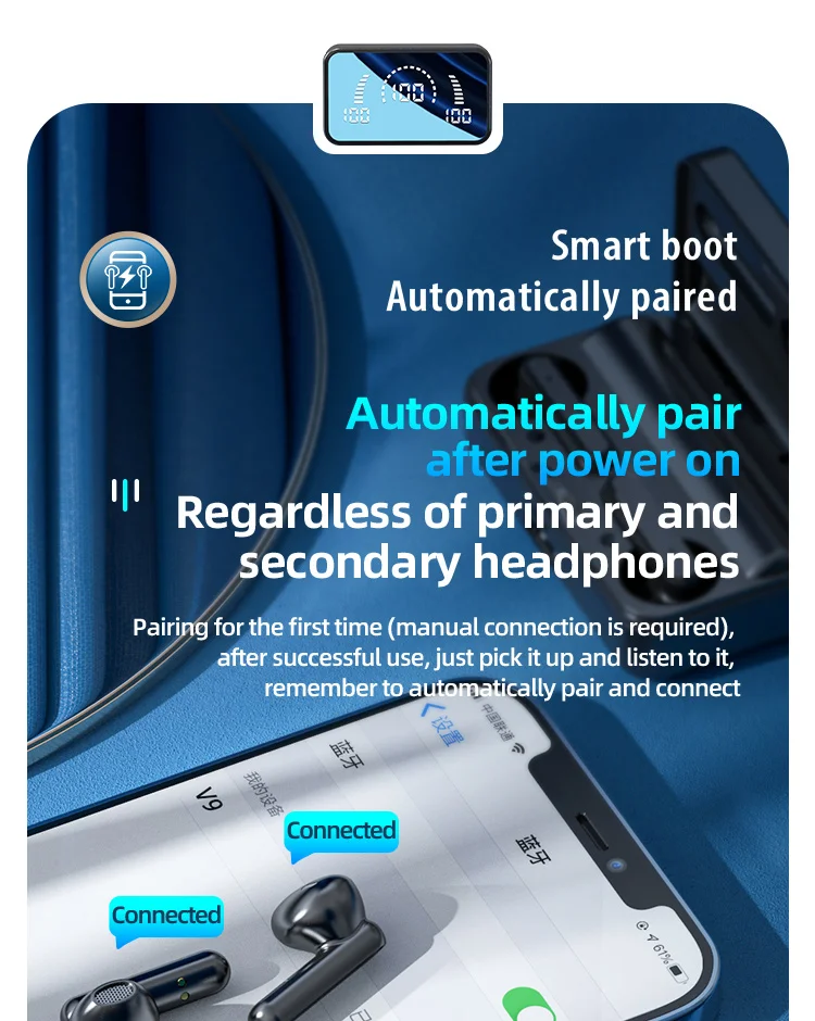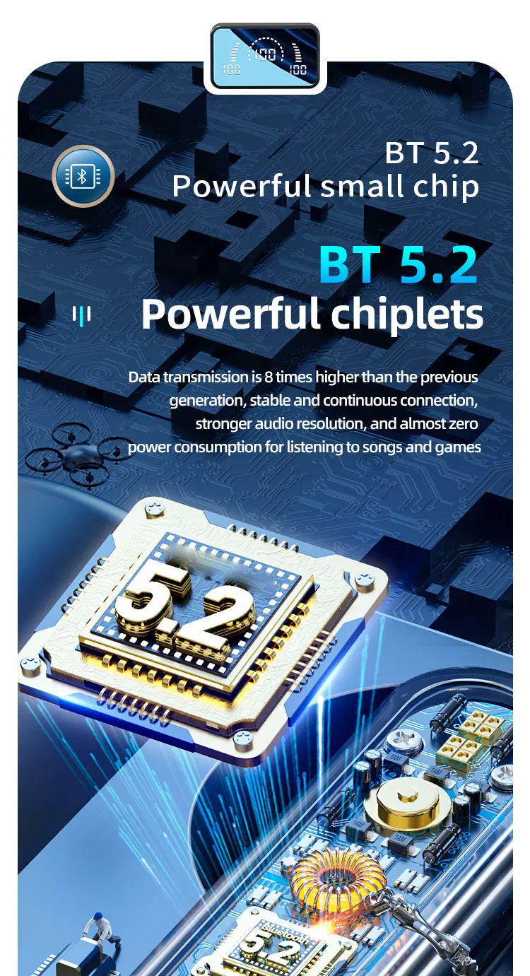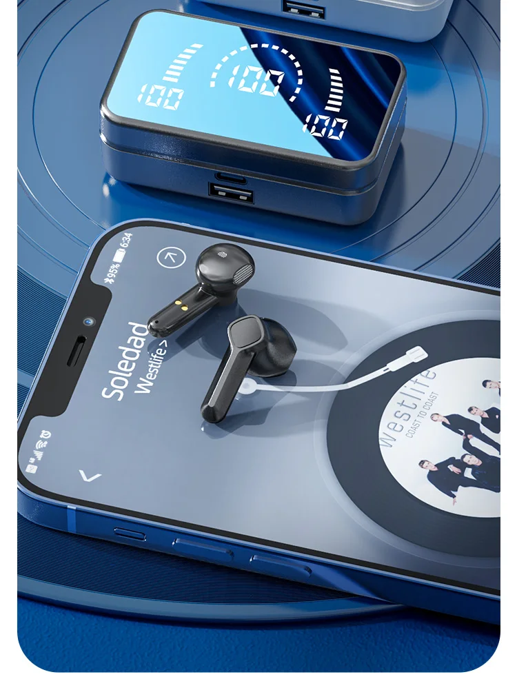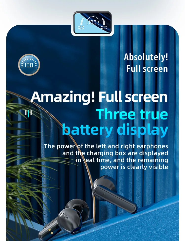 Mirror digital display in-ear Bluetooth noise-cancelling headphones
