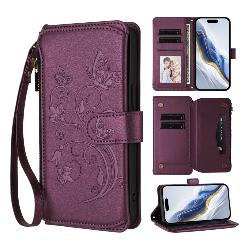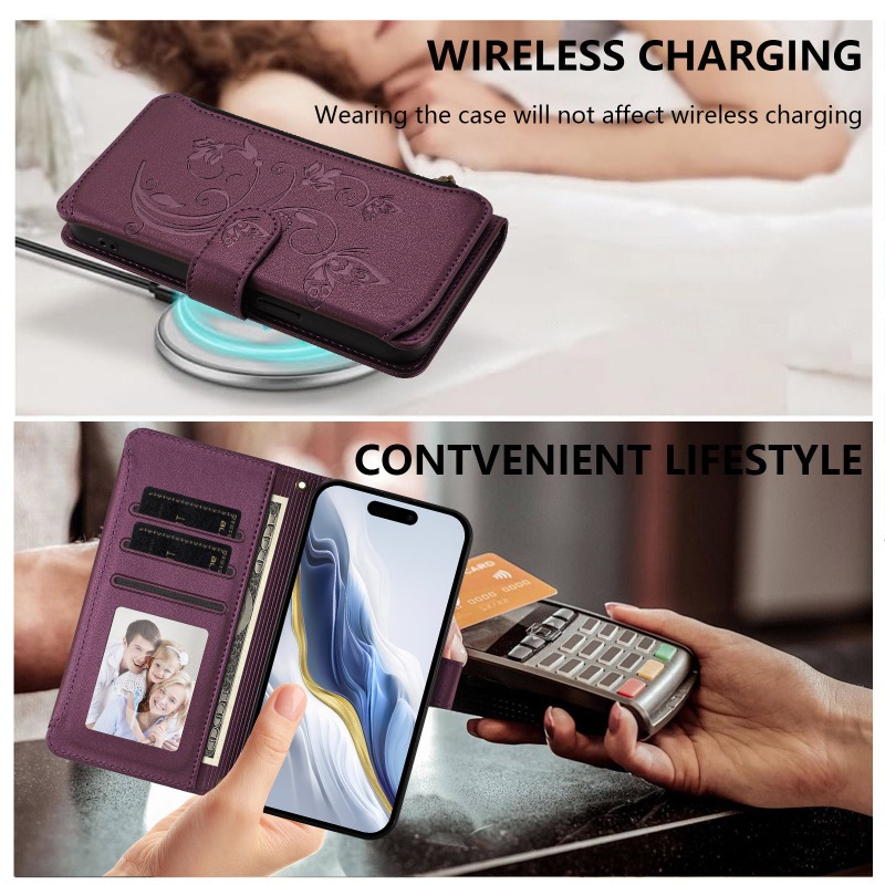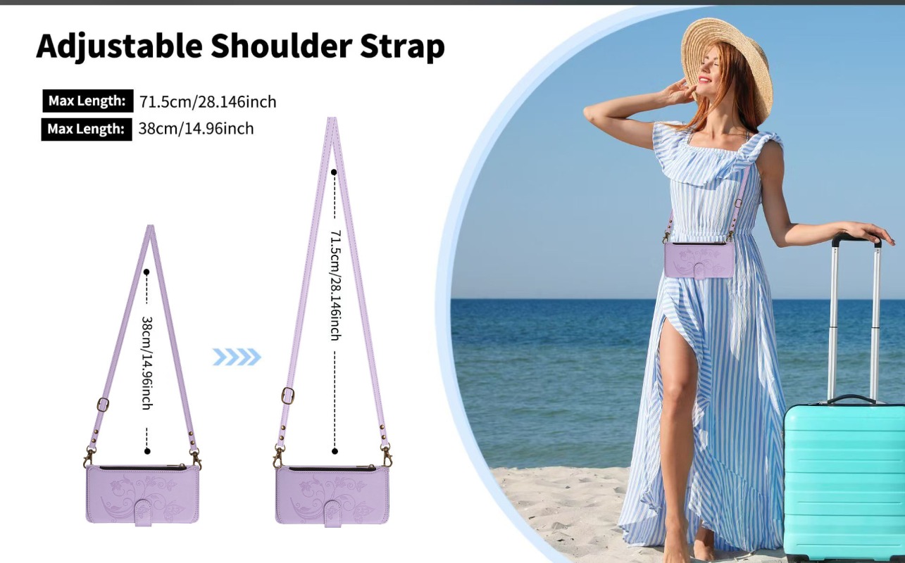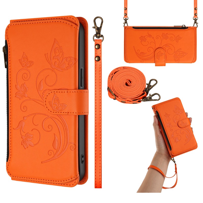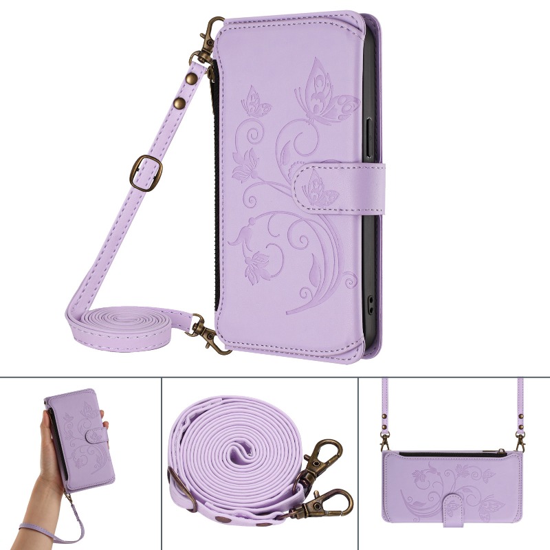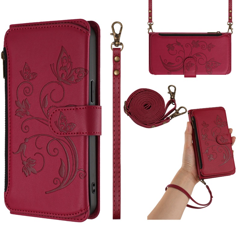 Butterfly Love Flower Embossed Crossbody Wallet Case for iPhone