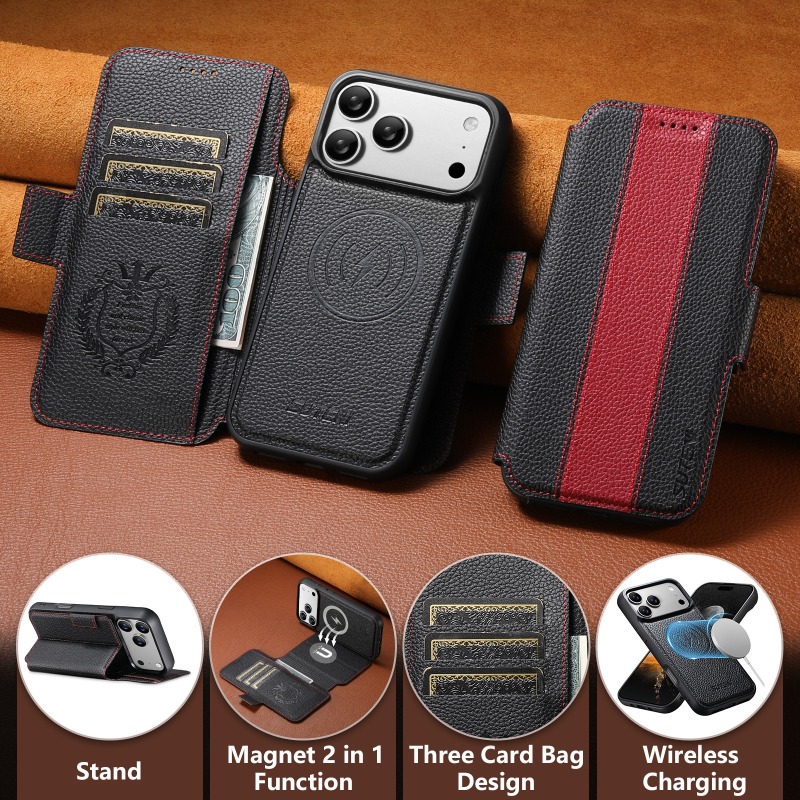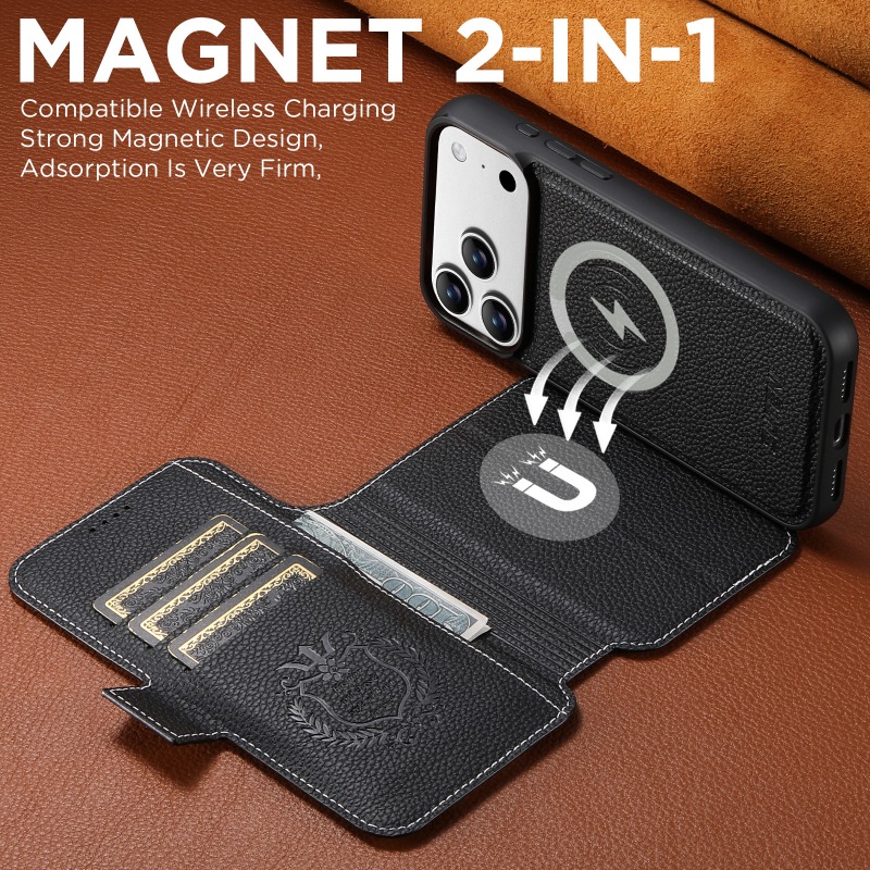 Magsafe magnetic 2-in-1 flip wallet case For iPhone