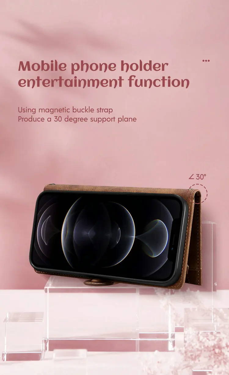 RFID Crossbody Zipper Leather Flip Wallet Case for Samsung