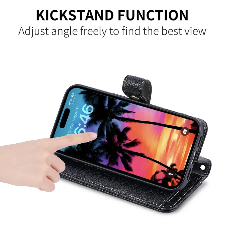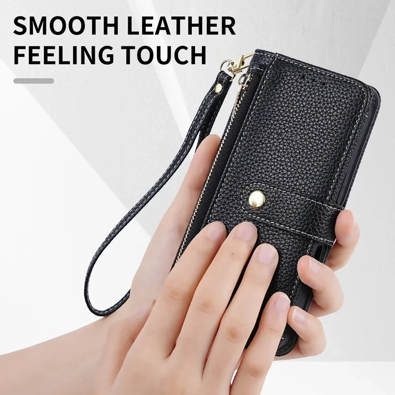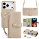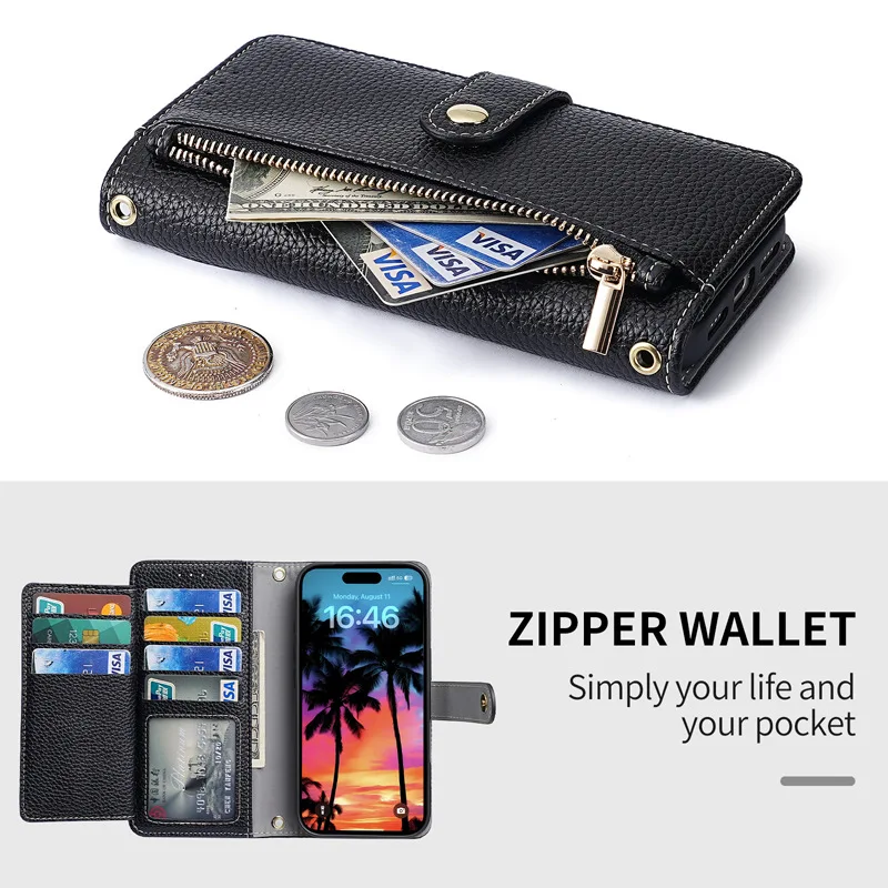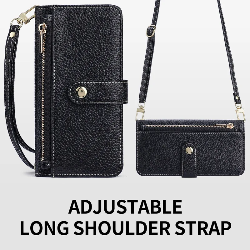 Zipper Flap Crossbody Leather Wallet Case for iPhone