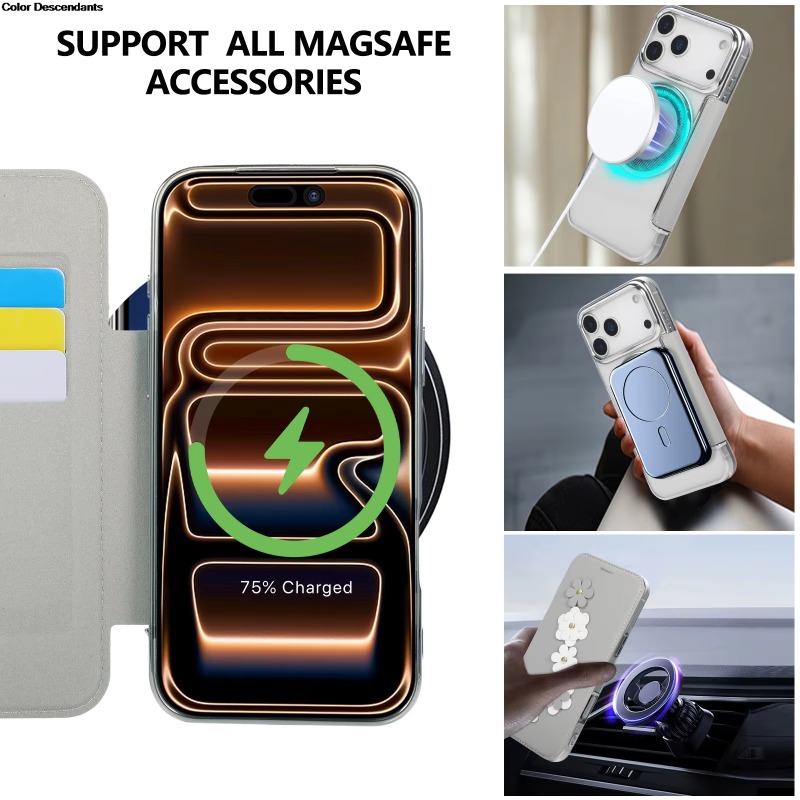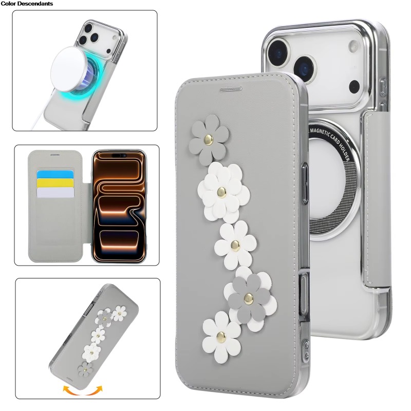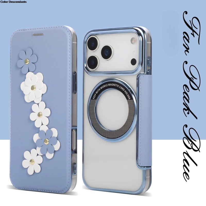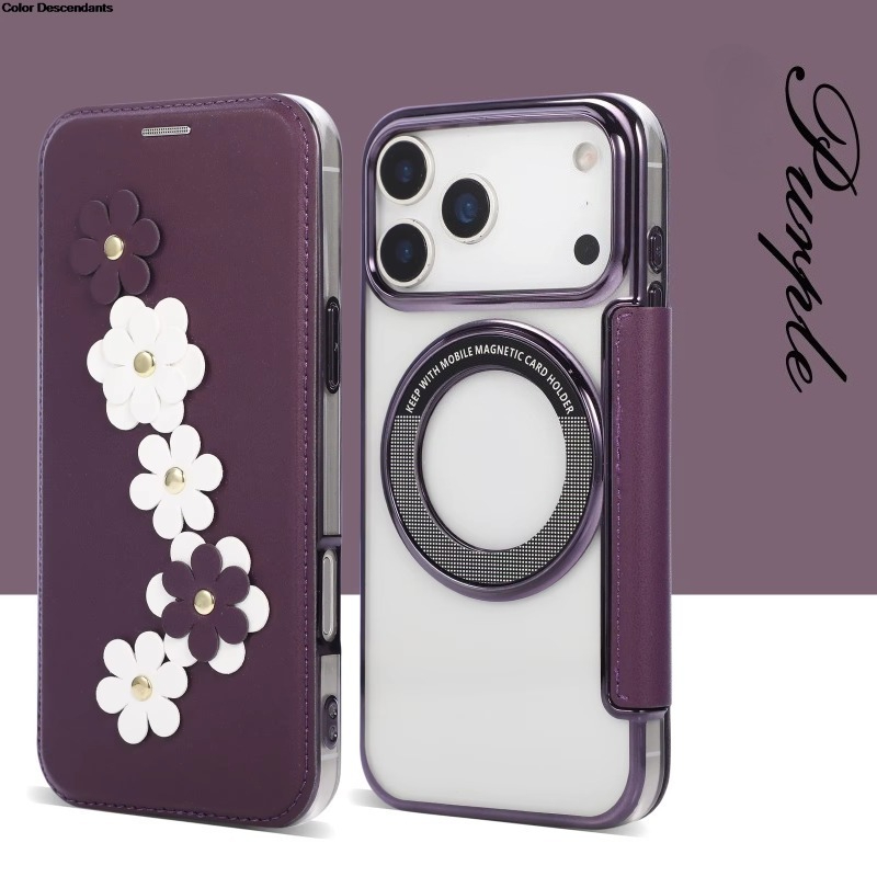 RFID 3D Flower Leather Flip Wallet Case For iPhone