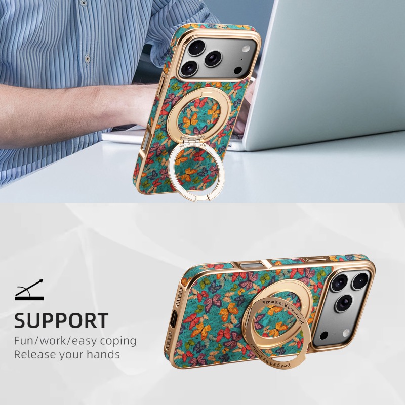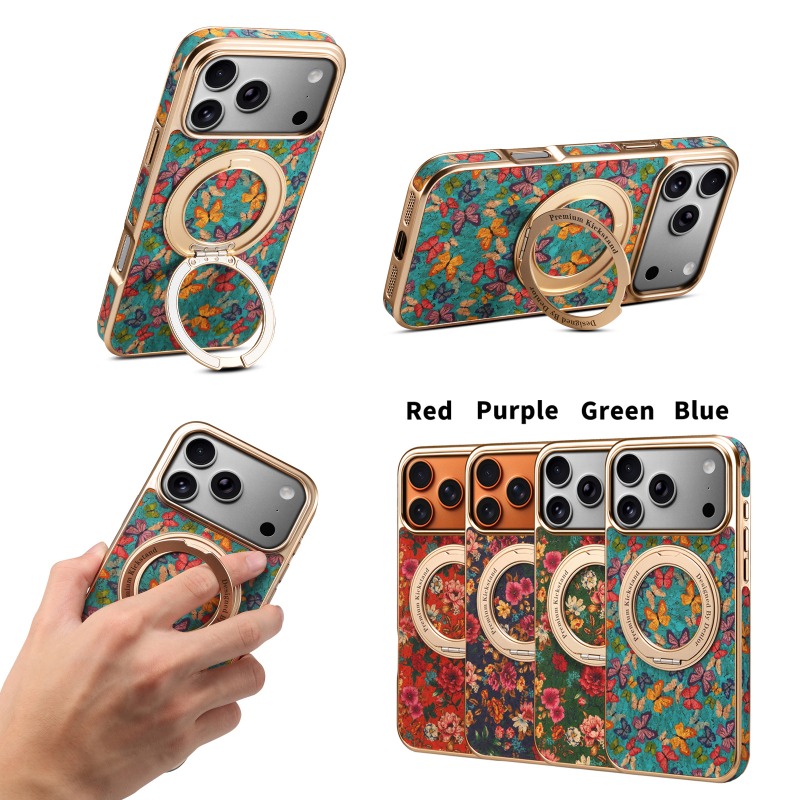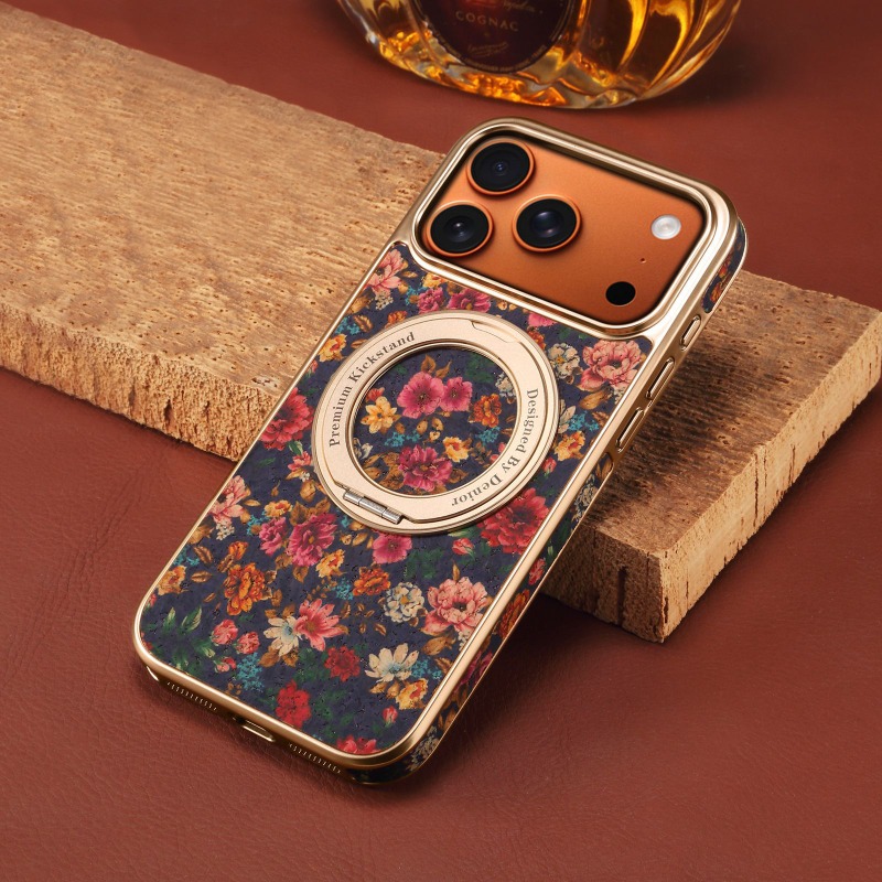 Flower Language Gear Electroplating Magnetic Bracket Case For iPhone