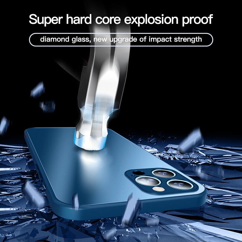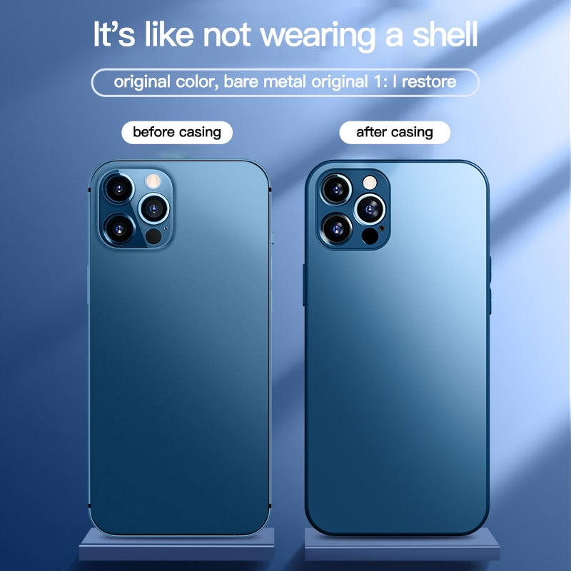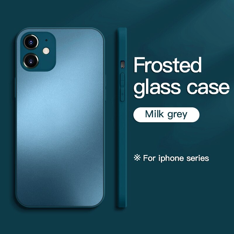 Original Square Frosted Tempered Glass Case For iPhone